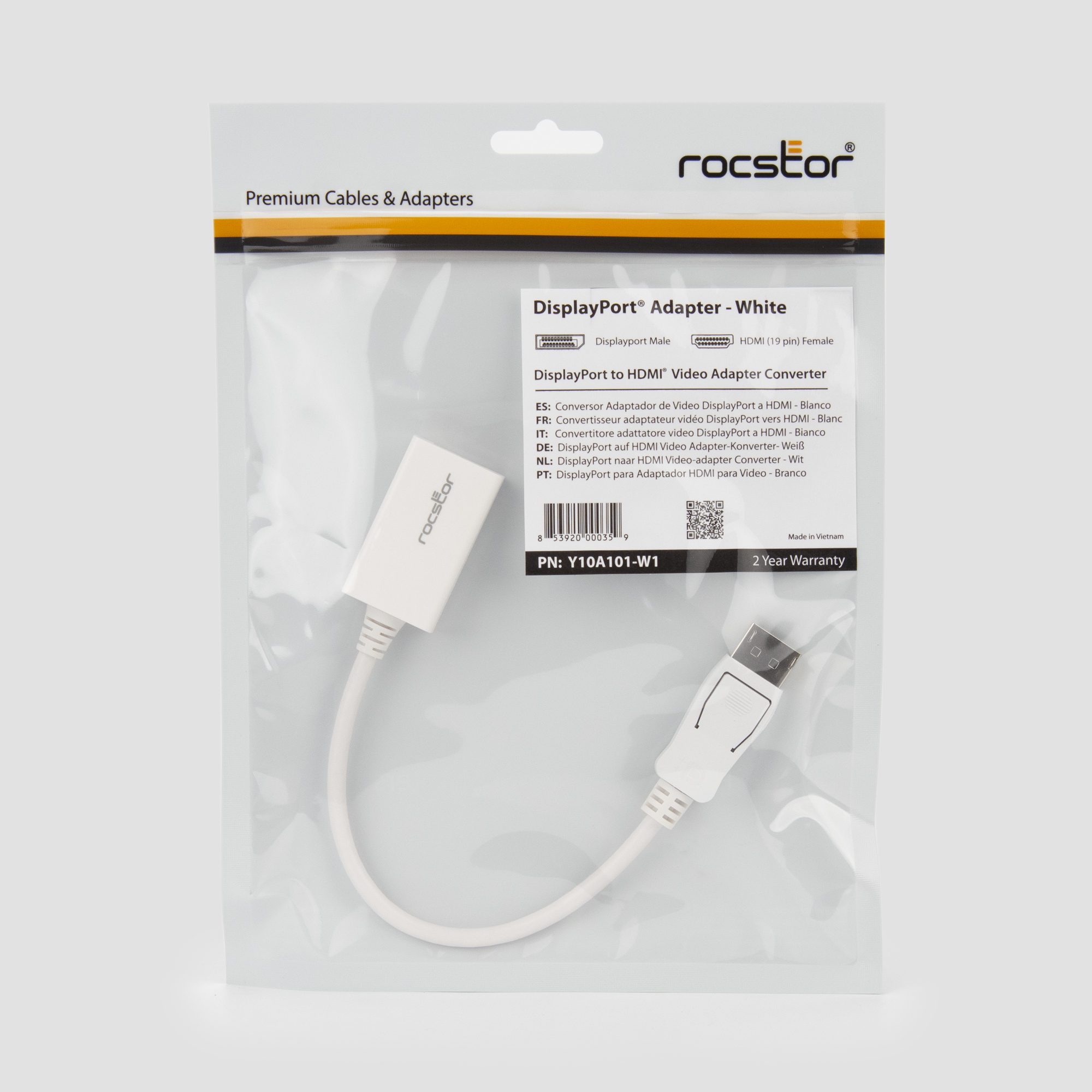 DisplayPort to HDMI Video Adapter Support Up to 1920×1200 enables you to use any video content from your laptop or desktop and display it on any monitor, HDTV, or projector using an HDMI input. Compliant with DisplayPort™ specifications version 1.1a, Rocstor® Displayport™ to HDMI adapter supports a maximum video resolution of 1080p up to 1920×1200 and digital 7.1 surround sound and ensures a solid and a crystal-viewing experience. This adapter supports transfer rate up to 2.25 Gbps and audio pass through when using a video source which is compatible with Intel® Thunderbolt™. DisplayPort 1.1a specifications allow there to be a longer reach between source and display without reducing picture quality.