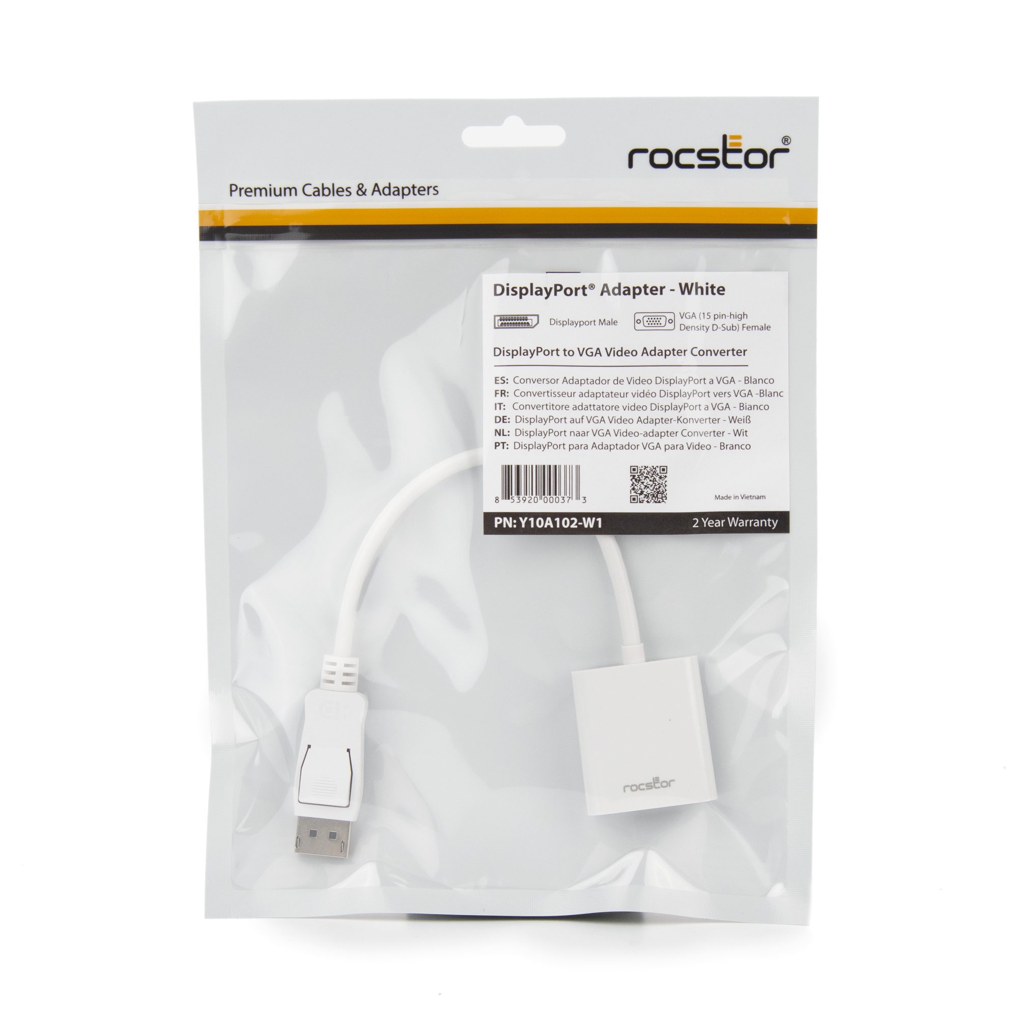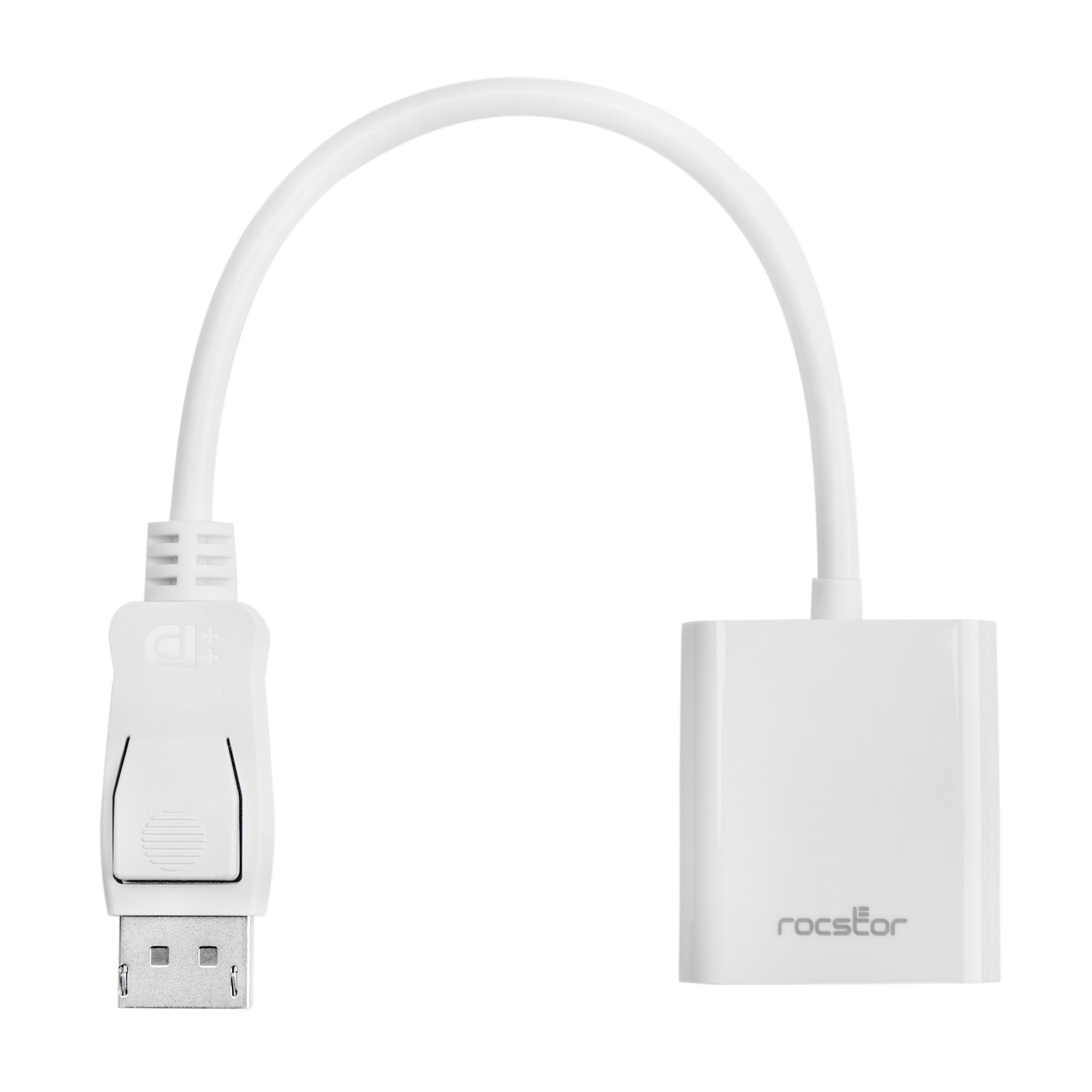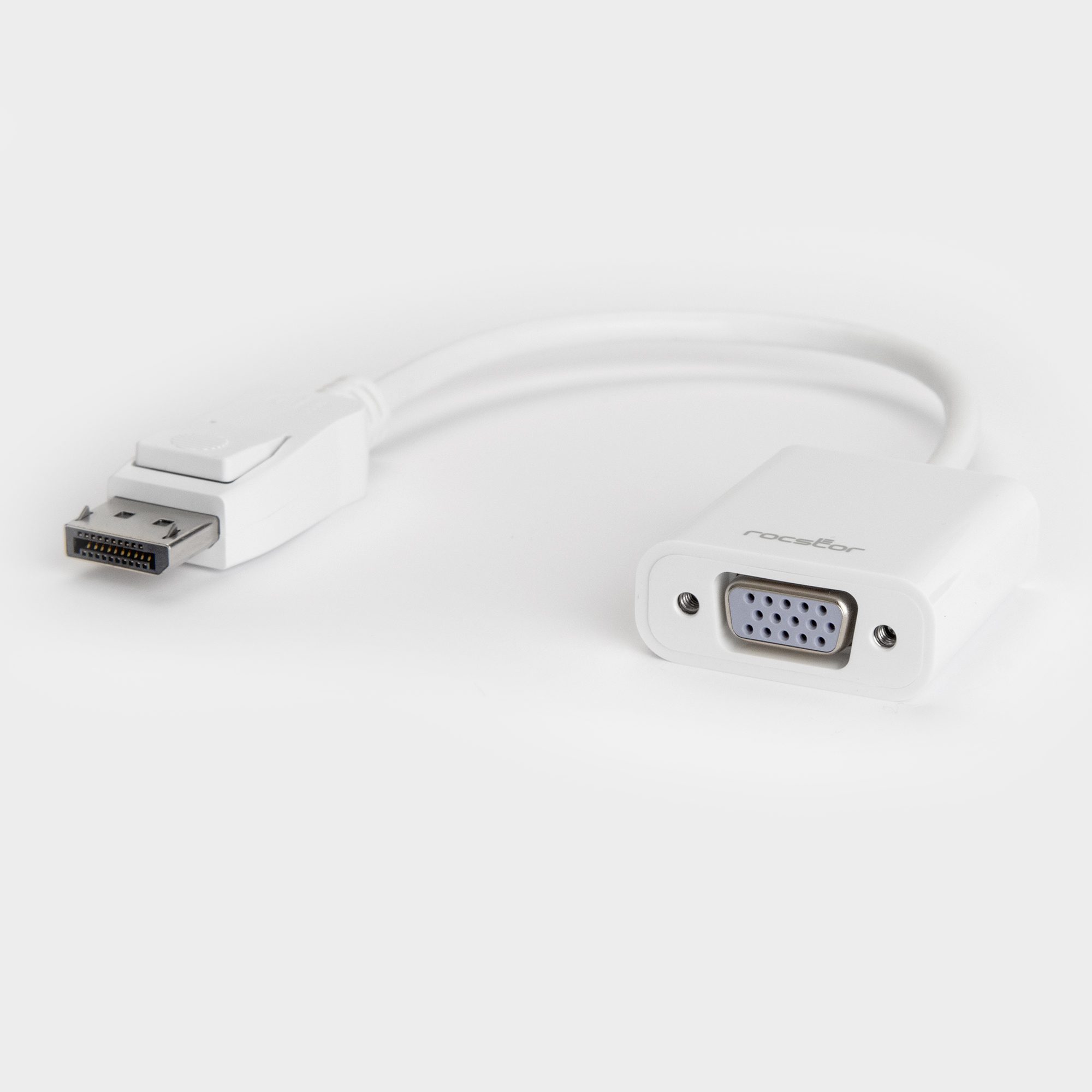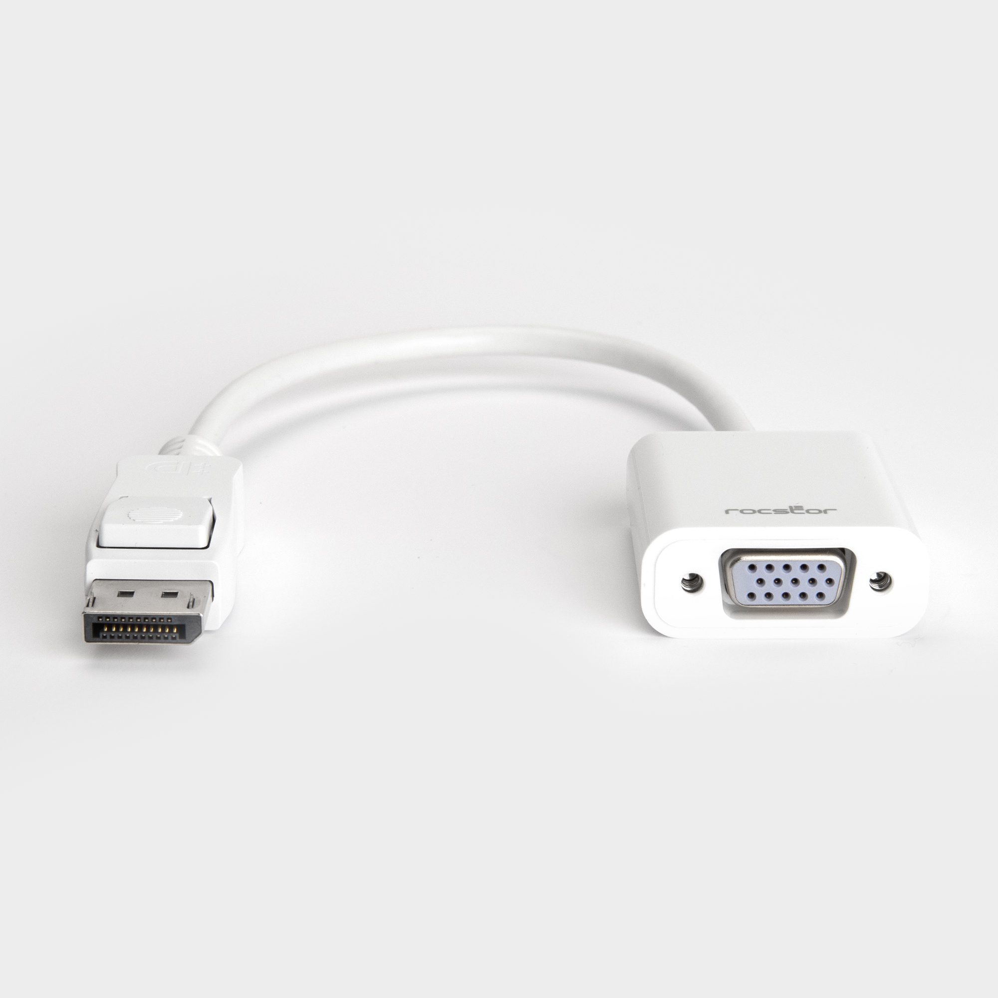 The Rocstor™ DisplayPort to VGA adapter lets you to take video content from your laptop or desktop and display it on any monitor, projector or HDTV featuring a VGA input. This premium adapter supports a maximum video resolution of 1920 x 1200 and ensures a quality viewing experience. The adapter can be used to enjoy movies on a home projector, mirror your desktop for an expanded workstation or show presentations at school or work. The adapter is compliant with DisplayPort specification version 1.1a, ensuring true DisplayPort quality when video content is adapted and viewed. DisplayPort 1.1a specifications allow there to be a longer reach between source and display without reducing picture quality. Purchase with confidence and rely on the protection of a 2 Year Limited Hardware Warranty from Rocstor for your Rocstor DisplayPort to VGA adapter.
