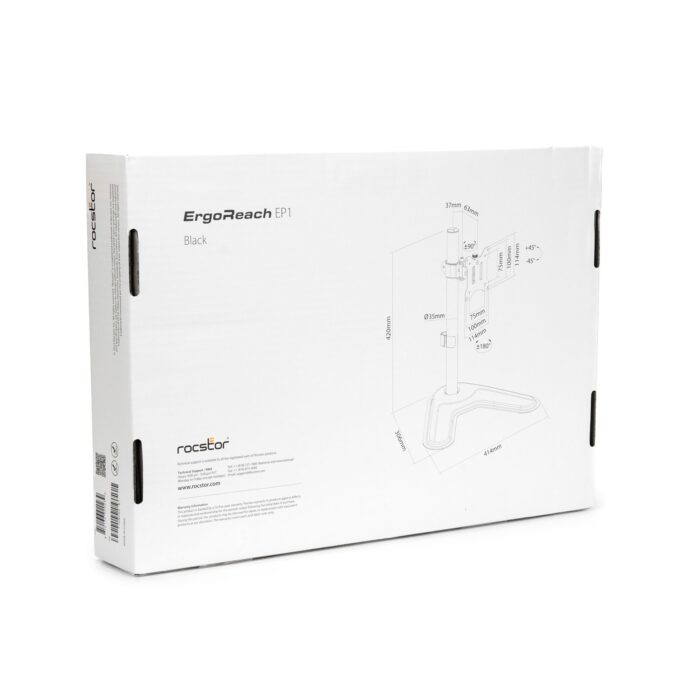 Unleash the full potential of your workspace with the Rocstor ErgoReach EP1 Premium Single Monitor Stand. Elevate your monitor to a comfortable height, achieve better viewing angles, and maximize productivity. Backed by Rocstor’s 5-year warranty and lifetime technical support, you can trust in the quality and reliability of this exceptional monitor stand.