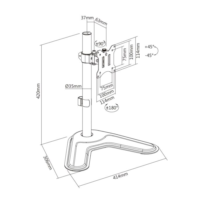 • Stylish and Heavy-Duty Pole Mount Free-standing, Single Monitor Mount