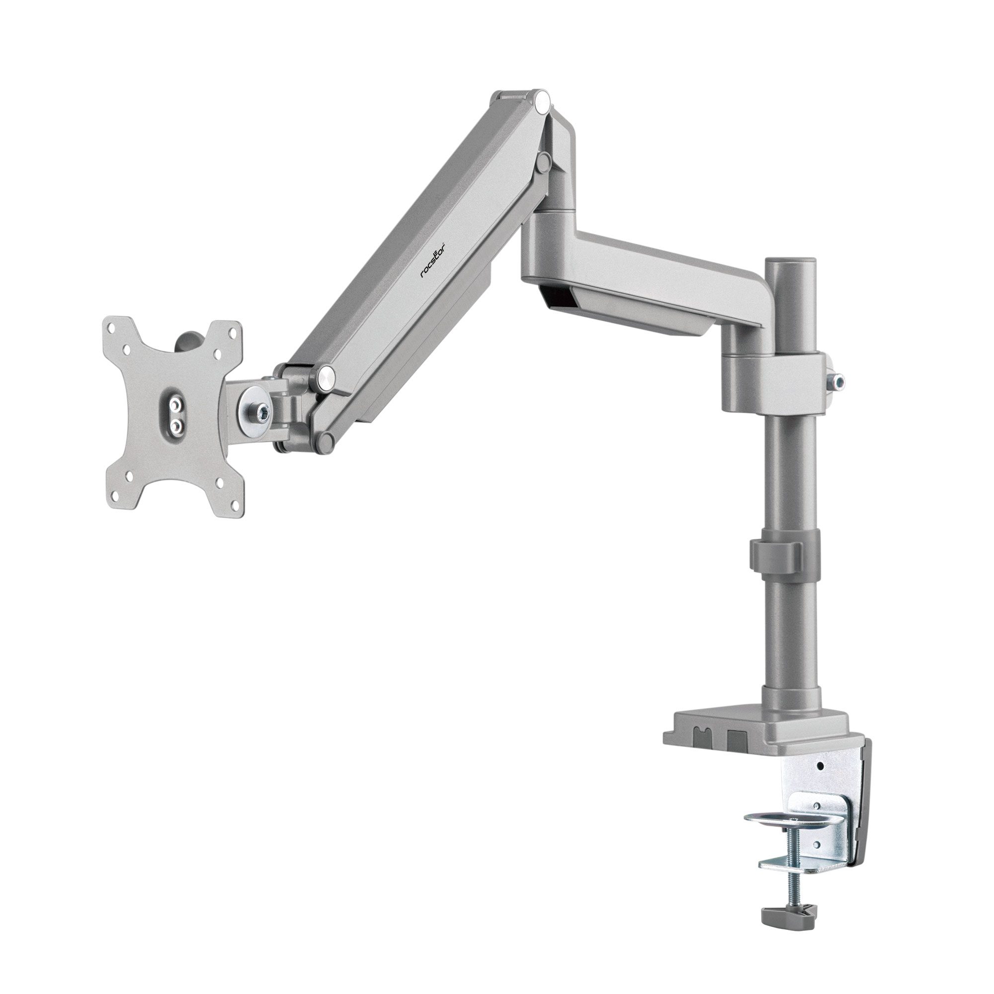 | Marketing Information | Rocstor ErgoReach EP15 Premium Aluminum Single Ergonomic Monitor Pole Mounted Arm is your go-to solution for a more efficient, stylish, and an organized workspace. Designed to accommodate monitors up to 34 inches, with a substantial weight capacity of 19.8lbs per screen, this monitor arm delivers form and function in most comfortable and productive way.Rocstor ErgoReach EP15 boasts a high-quality spring-assisted mechanism that offers smooth and stable tilting up to ±90° Range and swiveling up to ±90° Range. You have precise fingertip control over your monitor's positioning, allowing you to achieve the perfect view and posture.