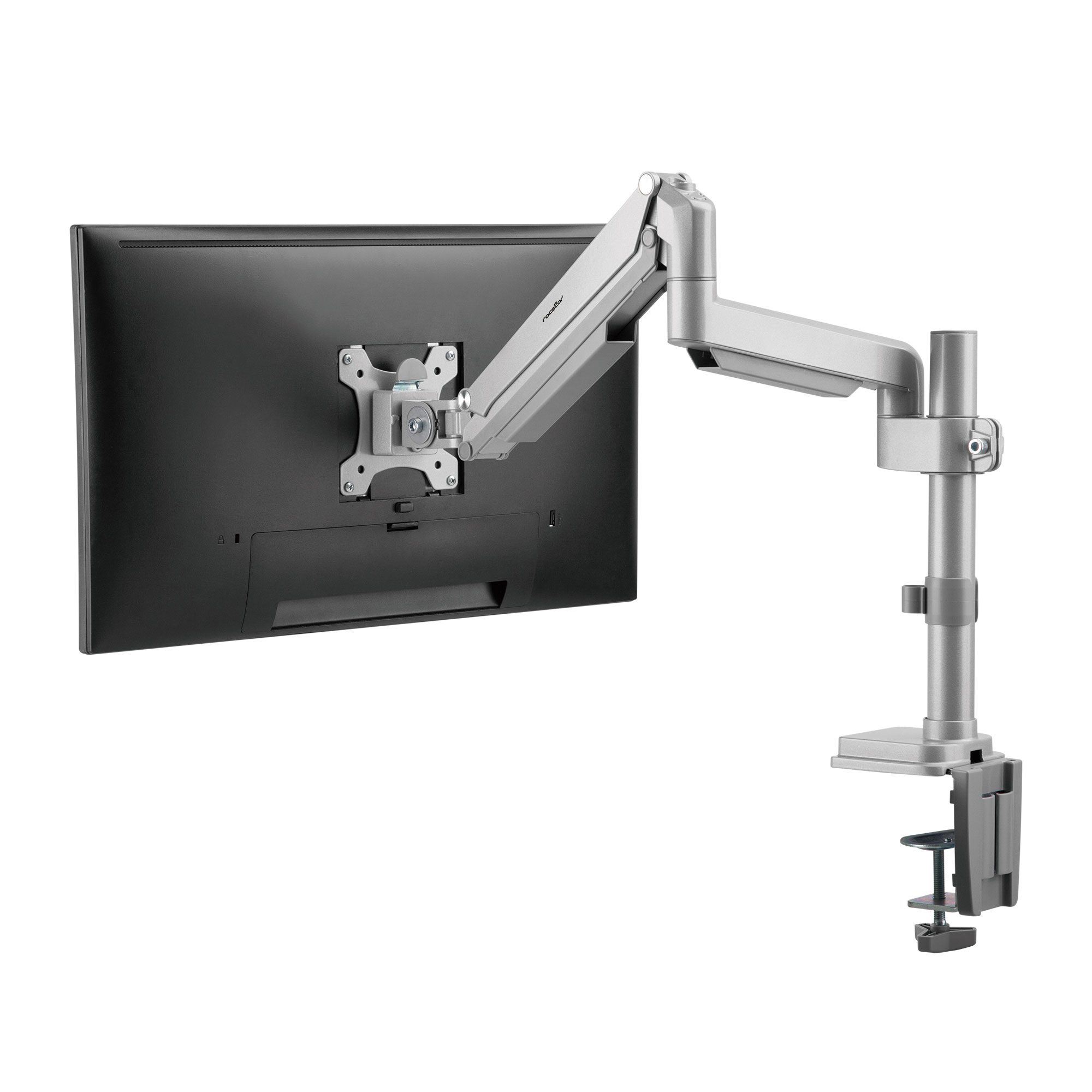 Installation is a hassel-free process thanks to the quick-release detachable VESA plate. Built-in Cable management keeps your workspace clean and tidy, while the integrated USB cable pass-through provides convenience for data and device charging. This monitor arm provides you two mounting options including both desk clamp and grommet for seamless integration into a variety of workspace configurations. It caters to both portrait and landscape orientations to match varying viewing needs. Crafted from a combination of steel, aluminum, and plastic and featuring a powder coating finish, this monitor arm represents unwavering stability and longevity. This ErgoReach EP15 Premium Aluminum Single Ergonomic Monitor Pole Mounted Arm is backed by Rocstor’s 5-year warranty and lifetime free technical support.