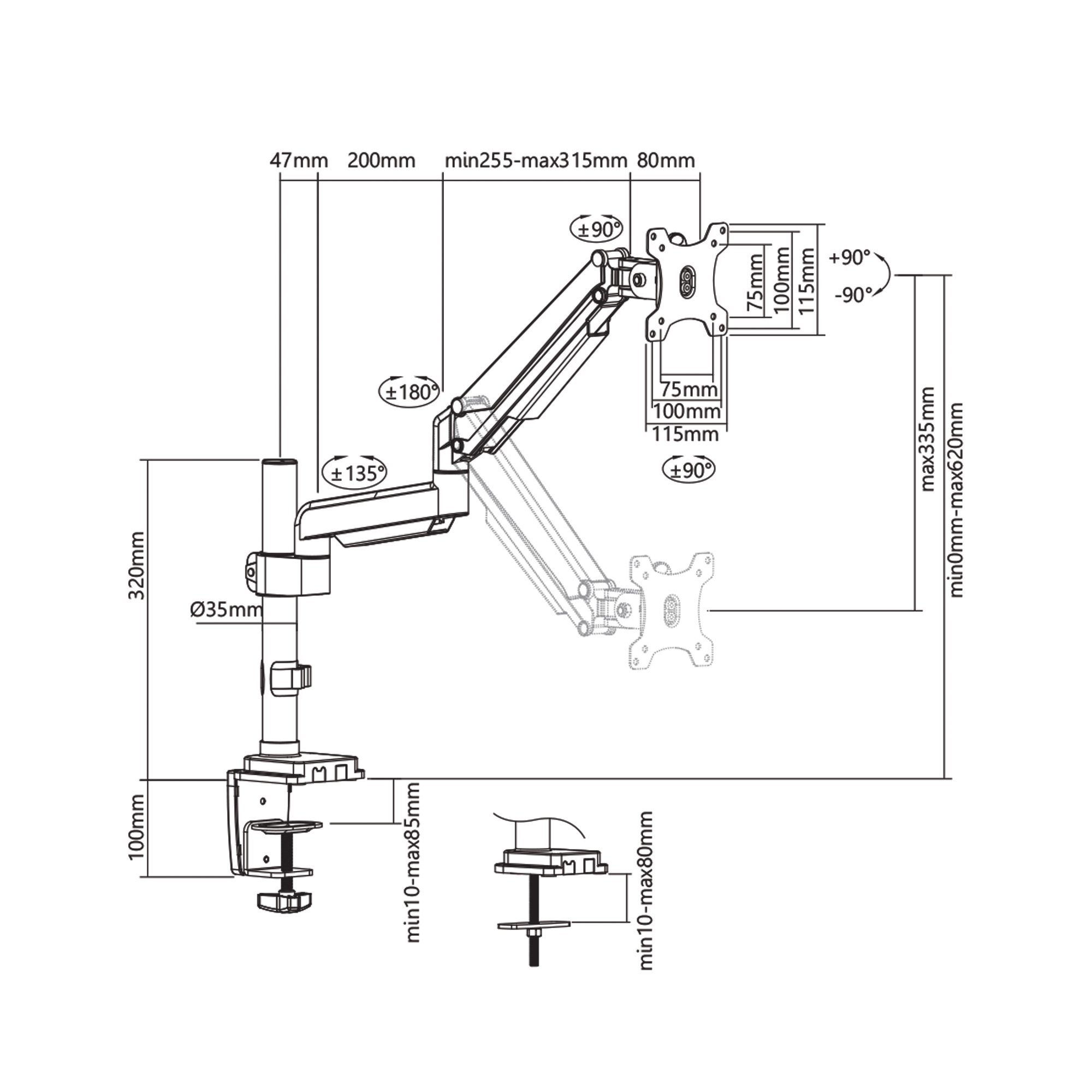 Rocstor ErgoReach® EP15 Premium Aluminum Single Ergonomic Monitor Pole Mounted Arm is your go-to solution for a more efficient, stylish, and an organized workspace. Designed to accommodate monitors up to 34 inches, with a substantial weight capacity of 19.8lbs per screen, this monitor arm delivers form and function in most comfortable and productive way. Rocstor ErgoReach EP15 boasts a high-quality spring-assisted mechanism that offers smooth and stable tilting up to ±90° Range and swiveling up to ±90° Range. You have precise fingertip control over your monitor’s positioning, allowing you to achieve the perfect view and posture.