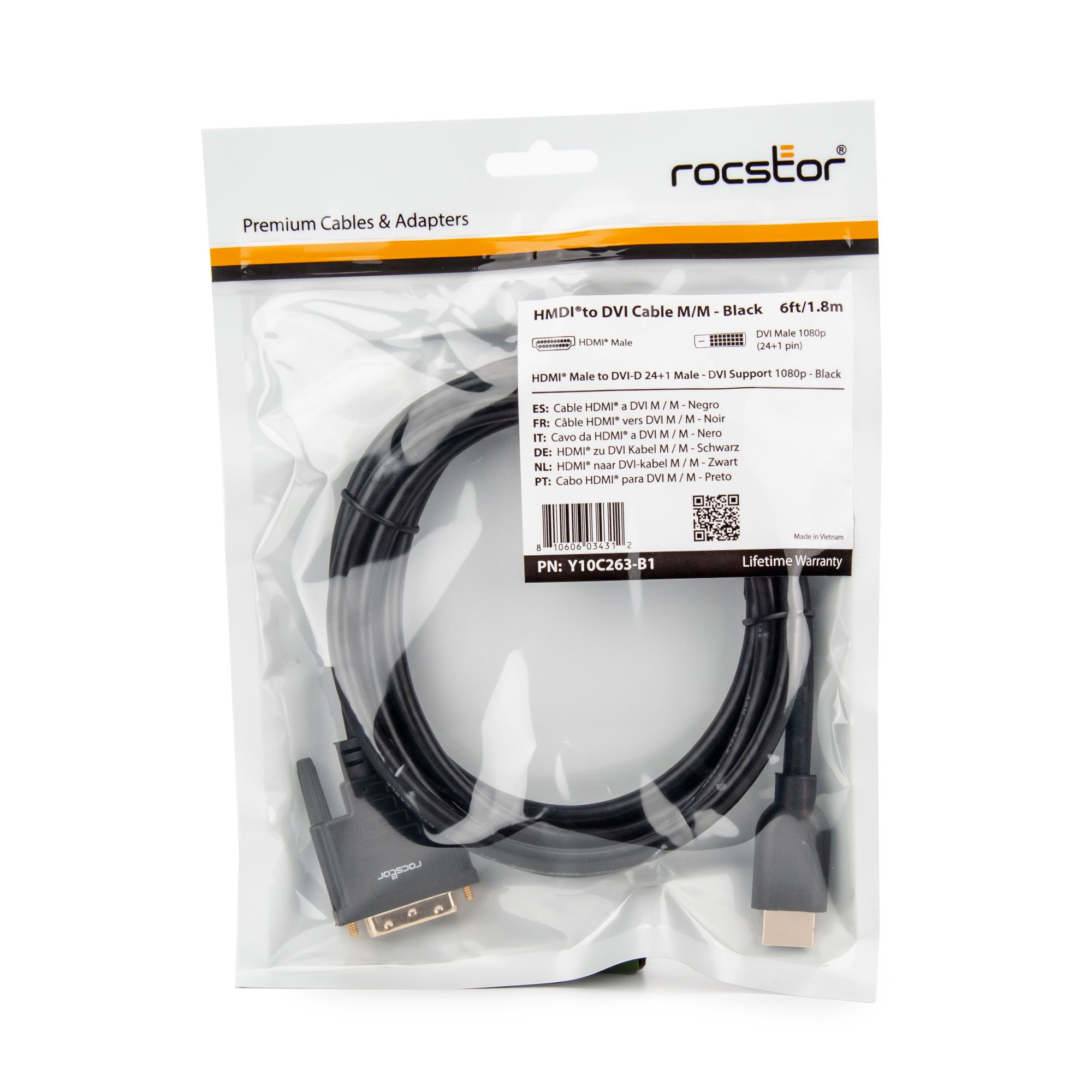 With support for resolutions up to 1080p and 1920 x 1200 @ 60Hz, this cable provides sharp, high-definition picture quality for your HDMI or DVI devices. Certified RoHS-compliant for eco-friendly performance, it’s built to last and is backed by Rocstor’s Lifetime Warranty, guaranteeing years of dependable use. Whether for professional or personal use, this cable is engineered for superior performance and reliability.