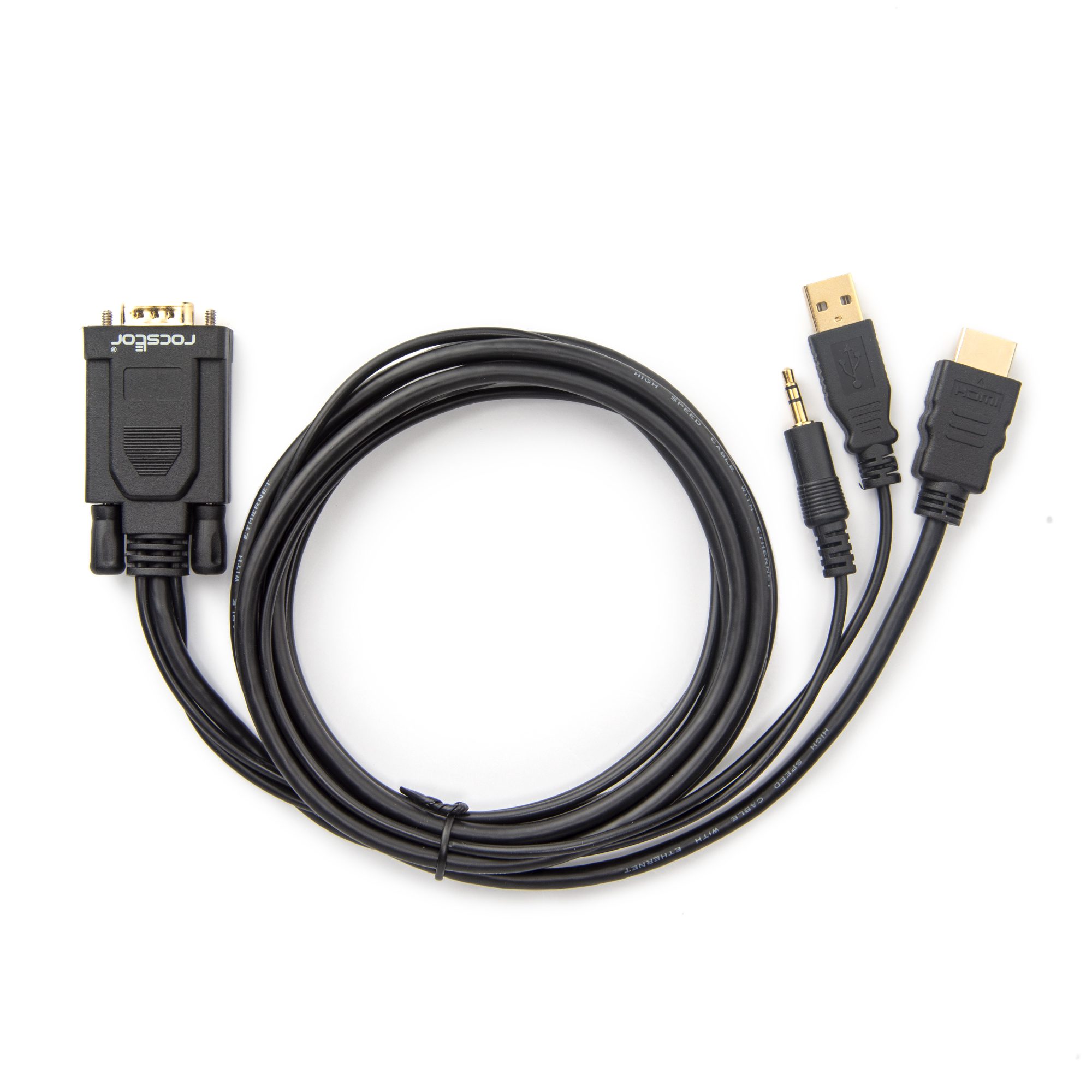 Rocstor Premium HDMI to VGA Video and Audio Cable Adapter – 3.5mm Audio and USB, 1920×1080 resolution with 3.5mm Audio and USB Output – HDMI Male to VGA (15 Pin) Male – 6 ft (1.83M) – Black