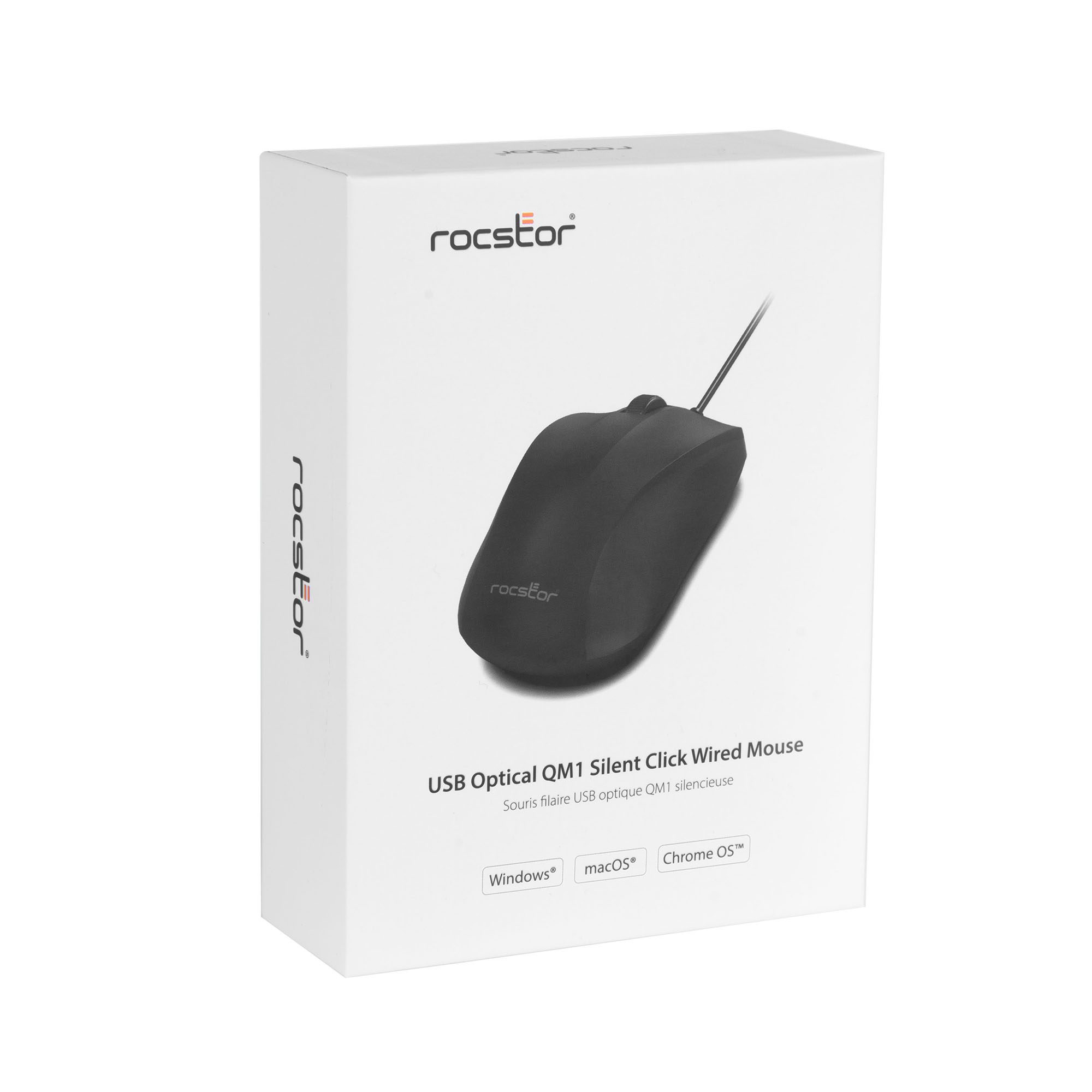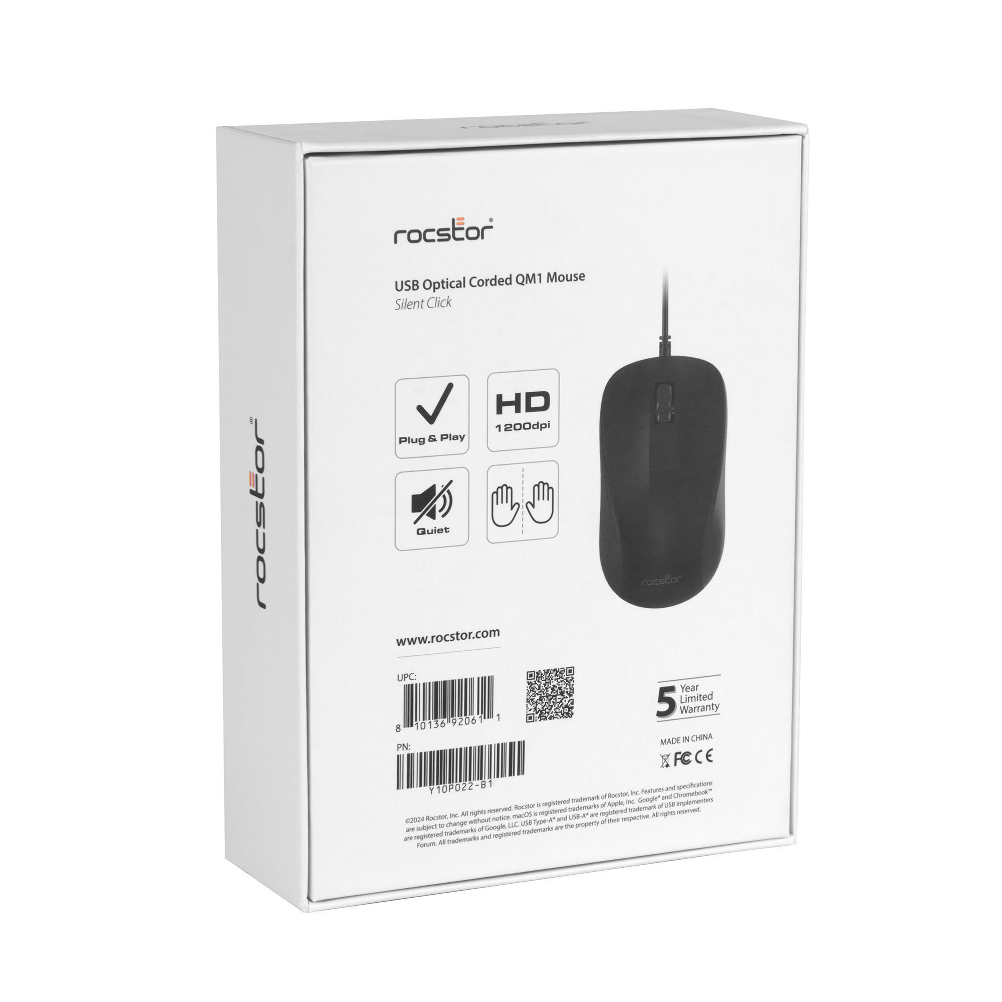 Rocstor Premium QM1 Silent Clicking USB Wired Contoured Mouse – 1200 dpi – High-definition Optilcal – Wired Cable – Scroll Wheel -3 Button(s) – Right and Left-handed – Full Size Mouse – Plug & Play – 6ft Cable – Compatible with Windows® 11. 10, 8.1, 8, 7 and Mac OS X – Black