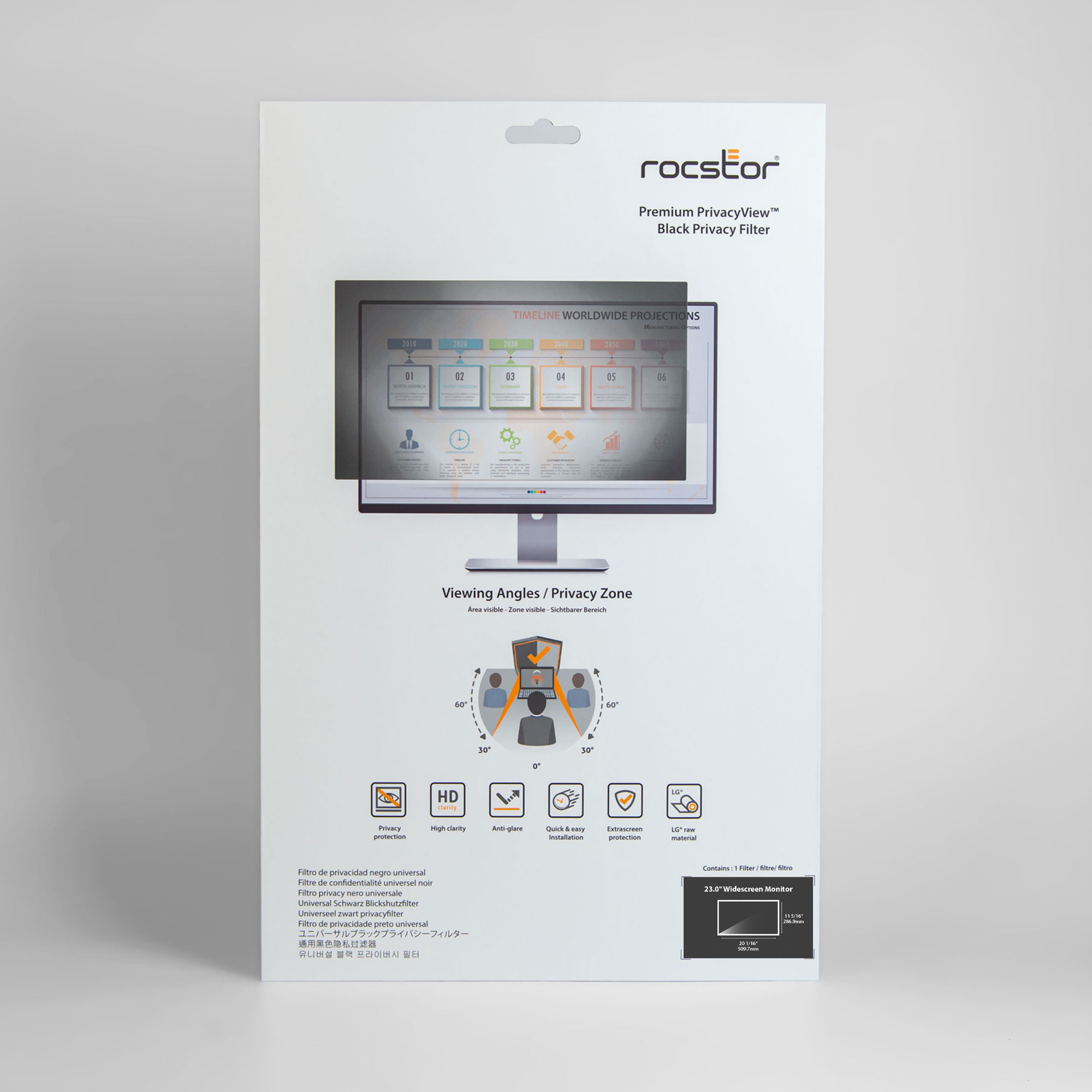 Rocstor PrivacyView™ Premium Privacy Filter for 23 Widescreen Monitor – For 23″ Monitor / Display – 16:9 Aspect Ratio – Glossy / Matte – Unframed – TAA Compliant – Black – For 23″ Widescreen LCD Monitor – 16:9 – Yes – TAA Compliant – For 23″ Widescreen LCD Monitor – 16:9 – Anti-glare – TAA Compliant WIDE MONITOR- UNFRAMED BLACK