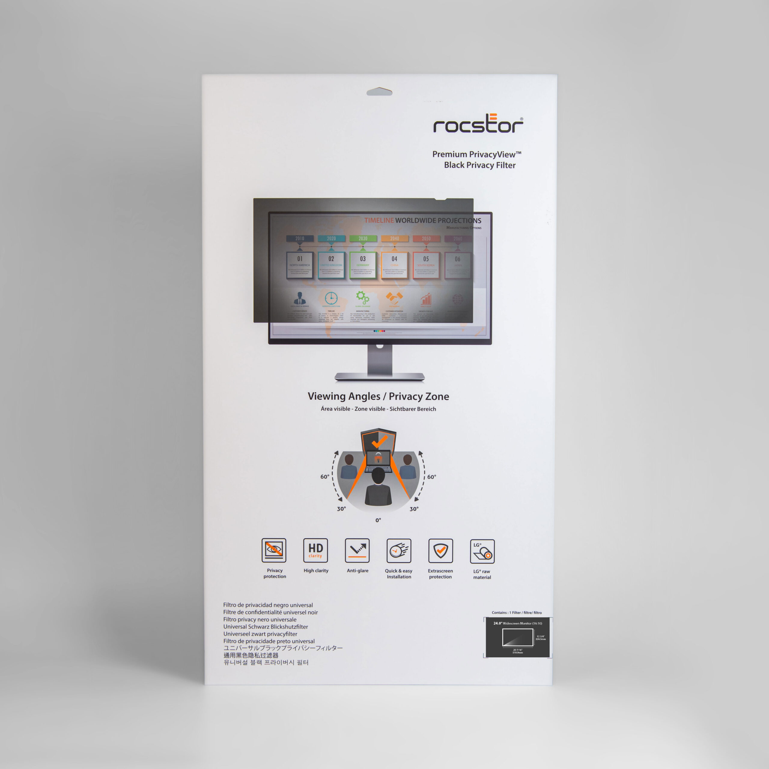 Marketing Information The Rocstor PrivacyView™ premium privacy and protection unframed filters provide a whole new level of security and privacy for your monitor. Rocstor 24' filter 16:10 aspect ratio privacy screen delivers the most advanced Microlouver Privacy Technology. Rocstor privacy filters can be used either in Glossy or Matte sides. The PrivacyView™ filters also protect from visual hackers and at the same time provides an amazing clear image for your direct view. Rocstor's advanced Privacy technology protects your information with tiny vertical blinds that are built on the surface of the filter which narrows the viewing angle. The information on your display would be only visible directly in front of the display up to 30 degrees away from the center of the screen and the sides are blacked out from outside of 60-degree viewing angle. Rocstor filters reduce display blue light by 37%.