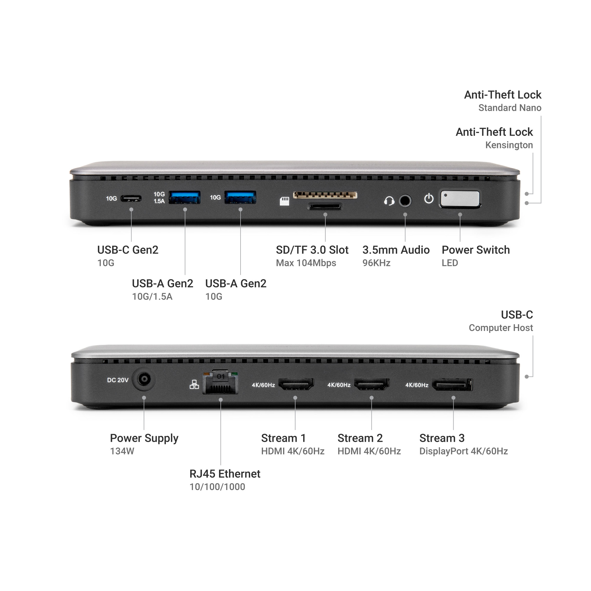- Dual Security Lock Support: Protect your workstation with both Kensington K-slot and Nano lock compatibility, ideal for shared or public environments.