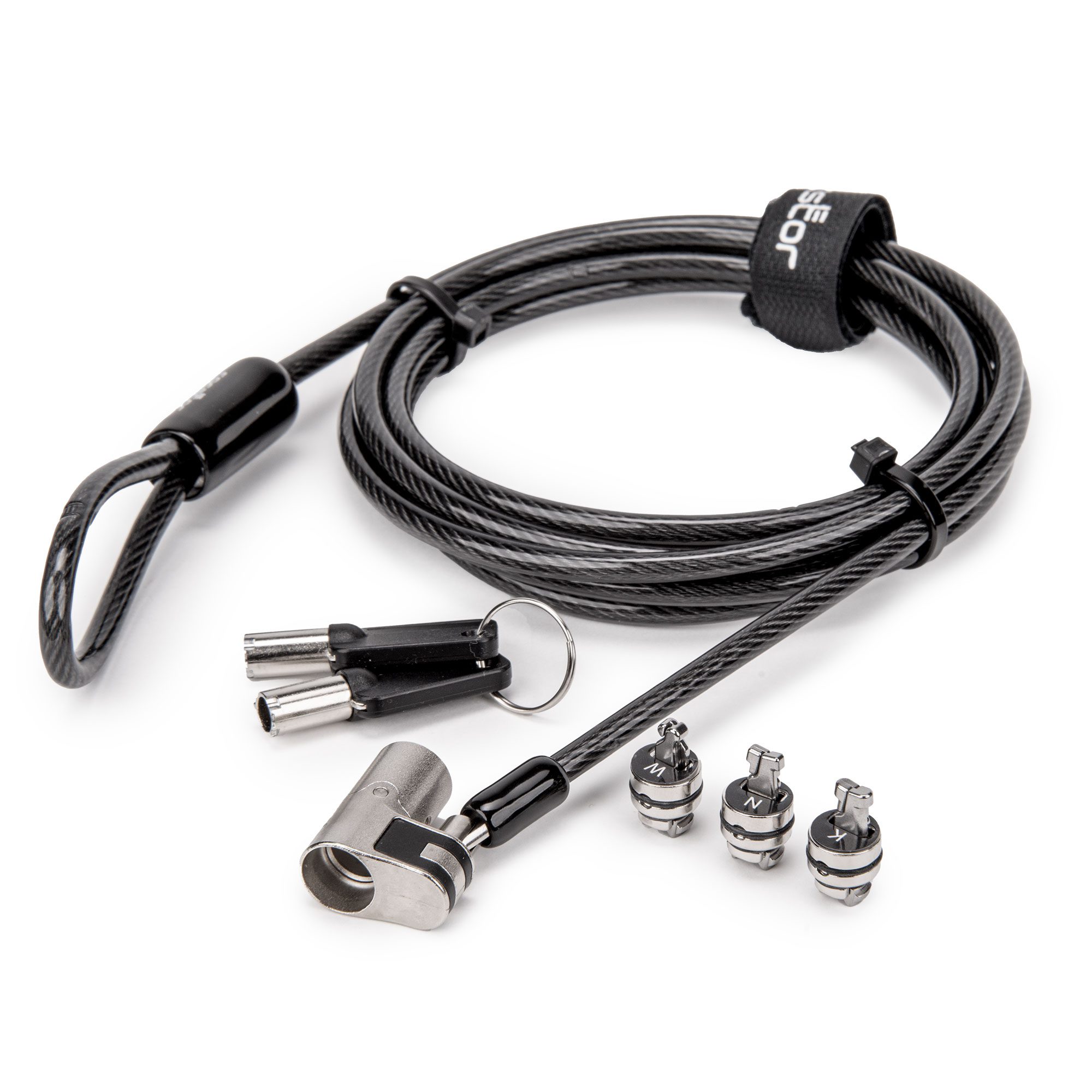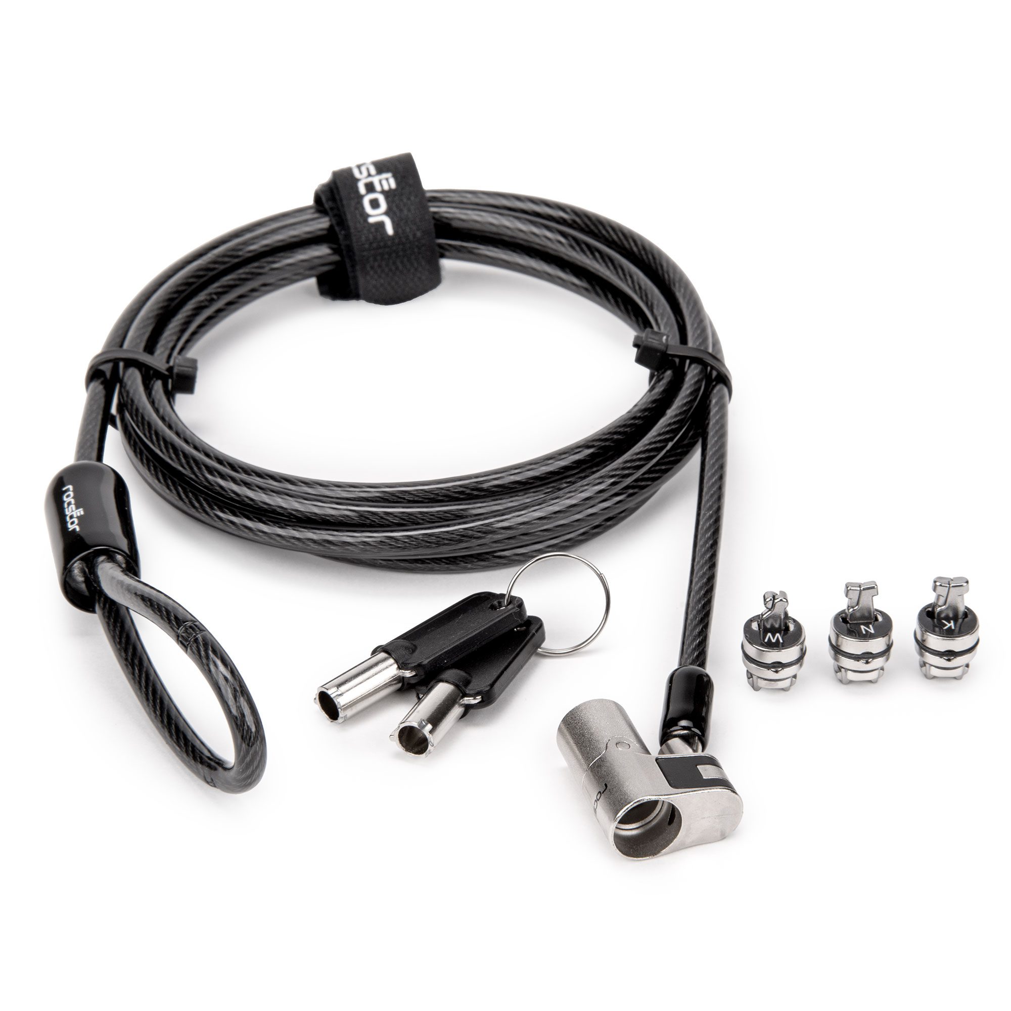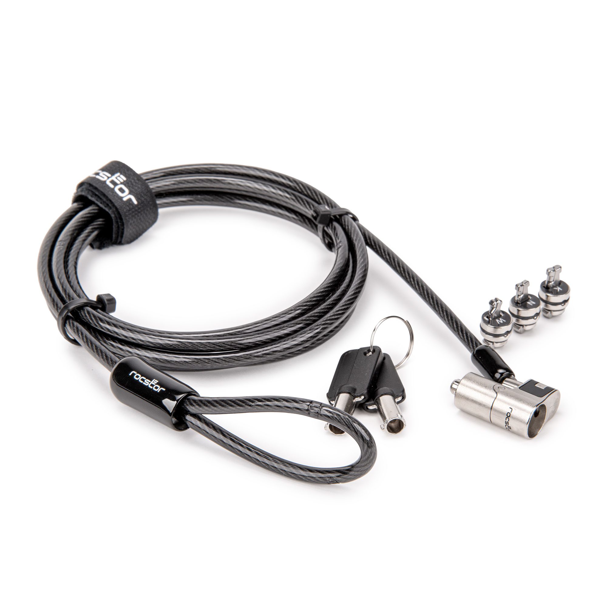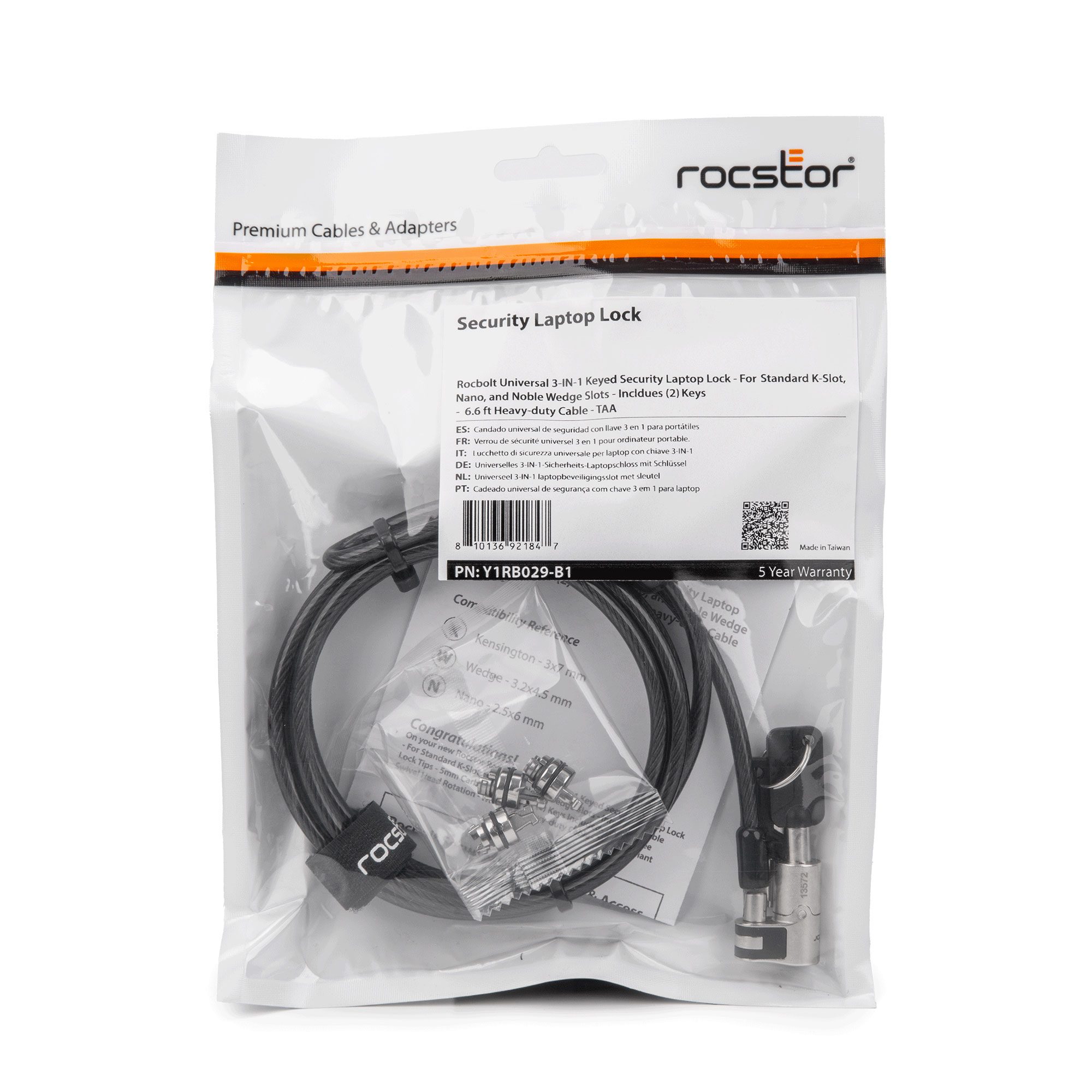 Rocstor Rocbolt Universal 3-IN-1 Keyed Security Laptop Lock – For Standard K-Slot, Nano, and Noble Wedge Slots – Interchangeable Lock Tips – 5mm Carbon Steel Cable, (2) Keys Included- 360-Degree Swivel Head Rotation – With 6.6 ft Heavy-duty Cable – TAA Compliant
