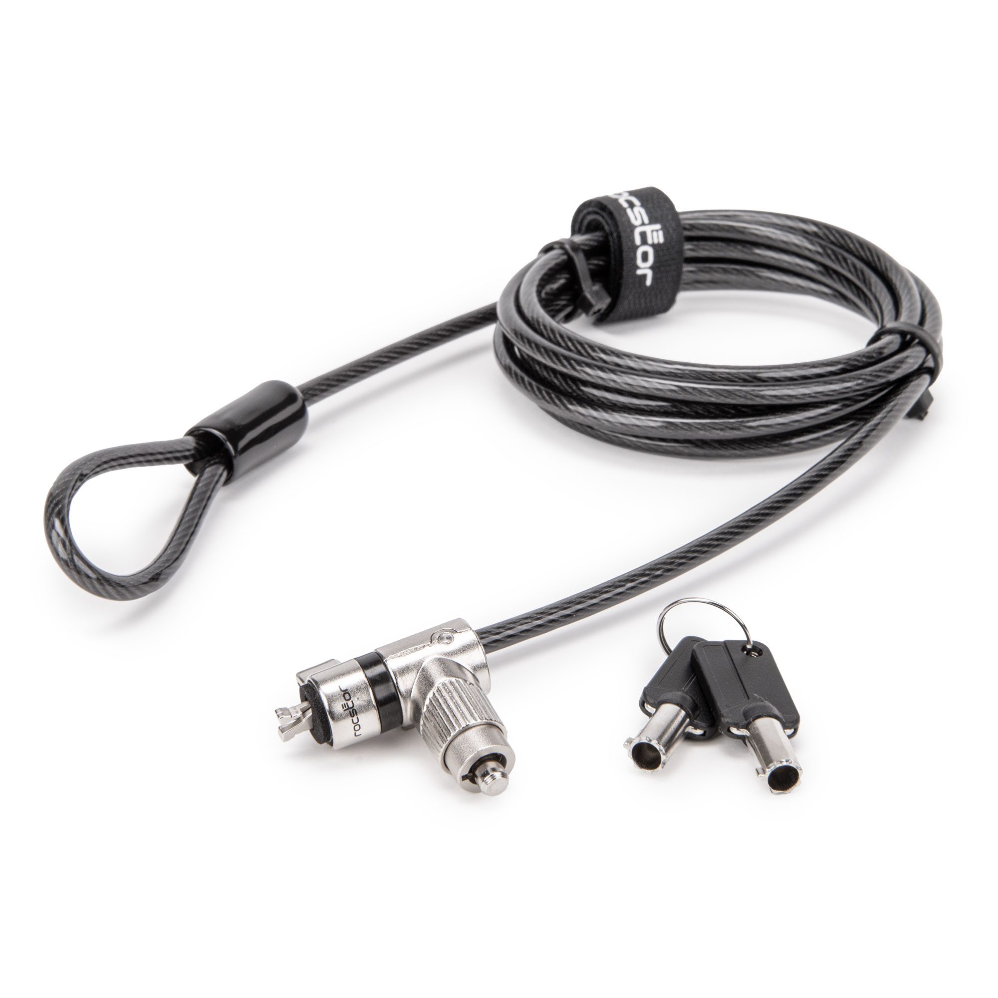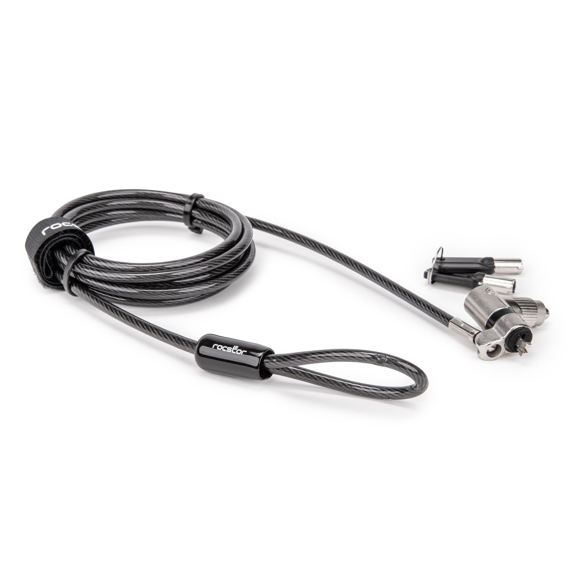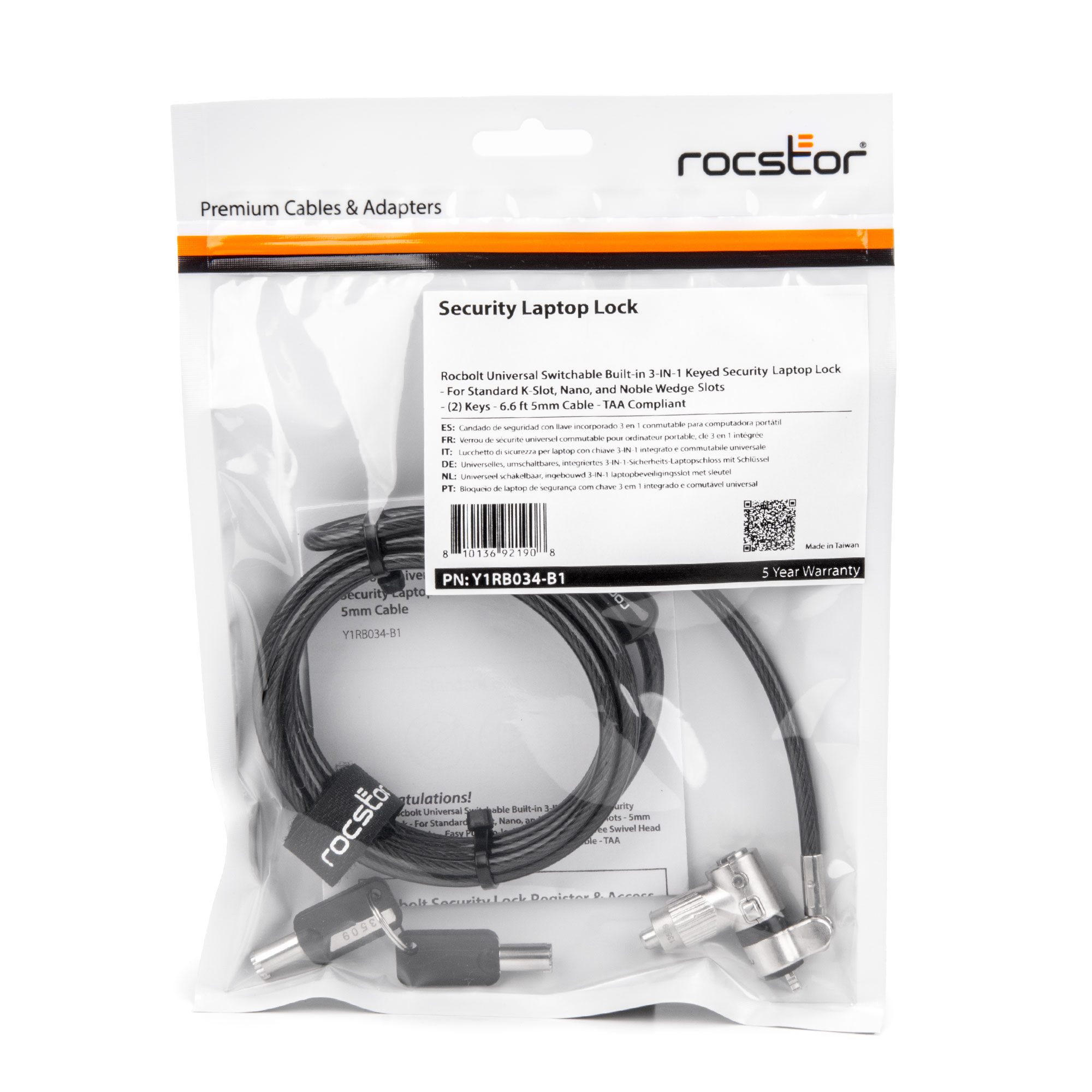 Ideal for securing laptops, desktops, monitors, and docks, the Rocbolt Universal Switchable Built-in 3-IN-1 Keyed Security Laptop Lock is engineered to meet the highest industry standards. With interchangeable lock tips, switching between different security slots is easy, ensuring compatibility with a wide array of devices. This TAA-compliant lock includes two keys for added convenience and reliability, making it a versatile and dependable choice for any organization looking to maintain consistent IT security solutions. Backed by Rocstor 5-year limited warranty and lifetime technical support.