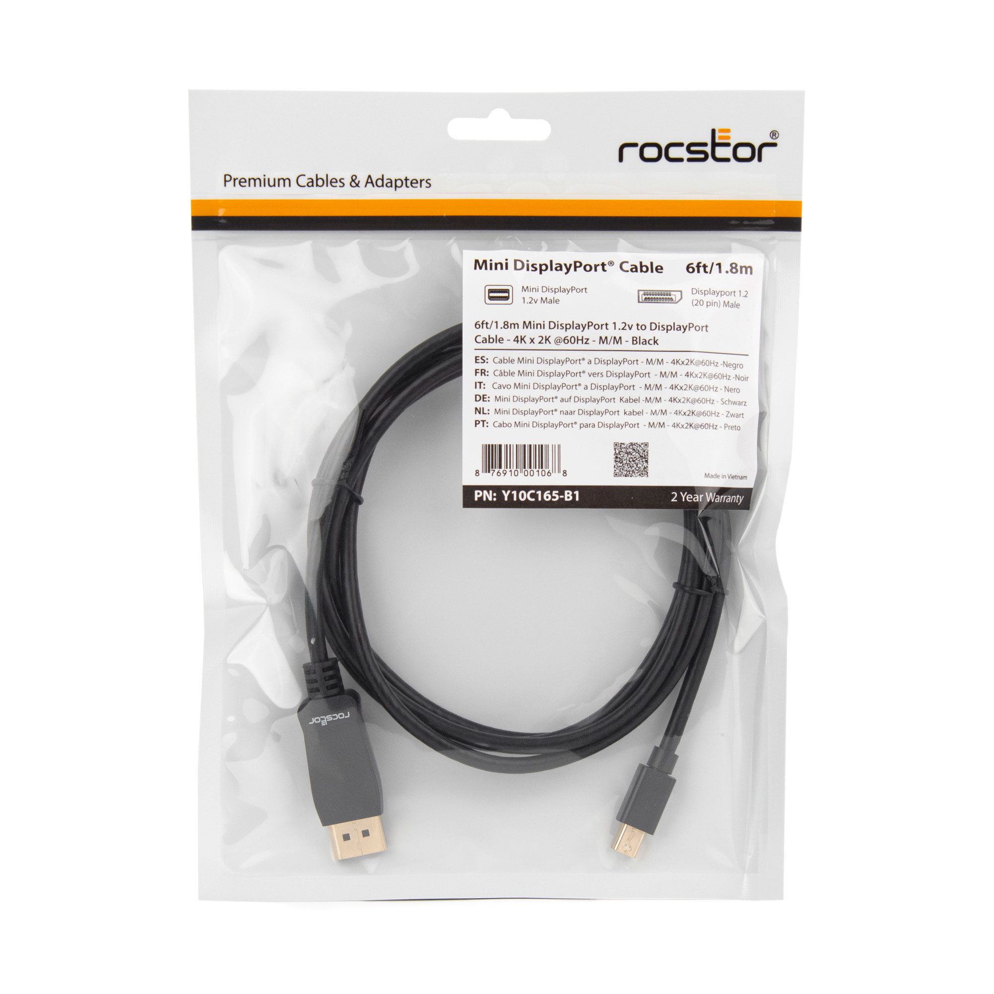 The Rocstor premium 6ft (2m) Mini-DisplayPort 1.2v to DisplayPort Cable offers up to 4K resolution in a cable solution for connecting to Mini-DisplayPort enabled computer to a DisplayPort – equipped monitors or high definition TVs. The Mini DisplayPort to DisplayPort cable from Rocstor enables you to view video content from any desktop or laptop with Mini DisplayPort video output on a variety of DisplayPort compliant displays. This cable supports resolution of up to 3840 x 2160 pixels @ 60Hz. It provides you clear, crisp, and rich video with clutter free adapters and no need for drivers or software. The 20-pin Mini-DisplayPort is DisplayPort 1.2 compliant / HDCP 1.3 and 21.6 Gbps of bandwidth. Use your Rocstor premium cable Worry free which is backed by 2 Year Limited Warranty.
