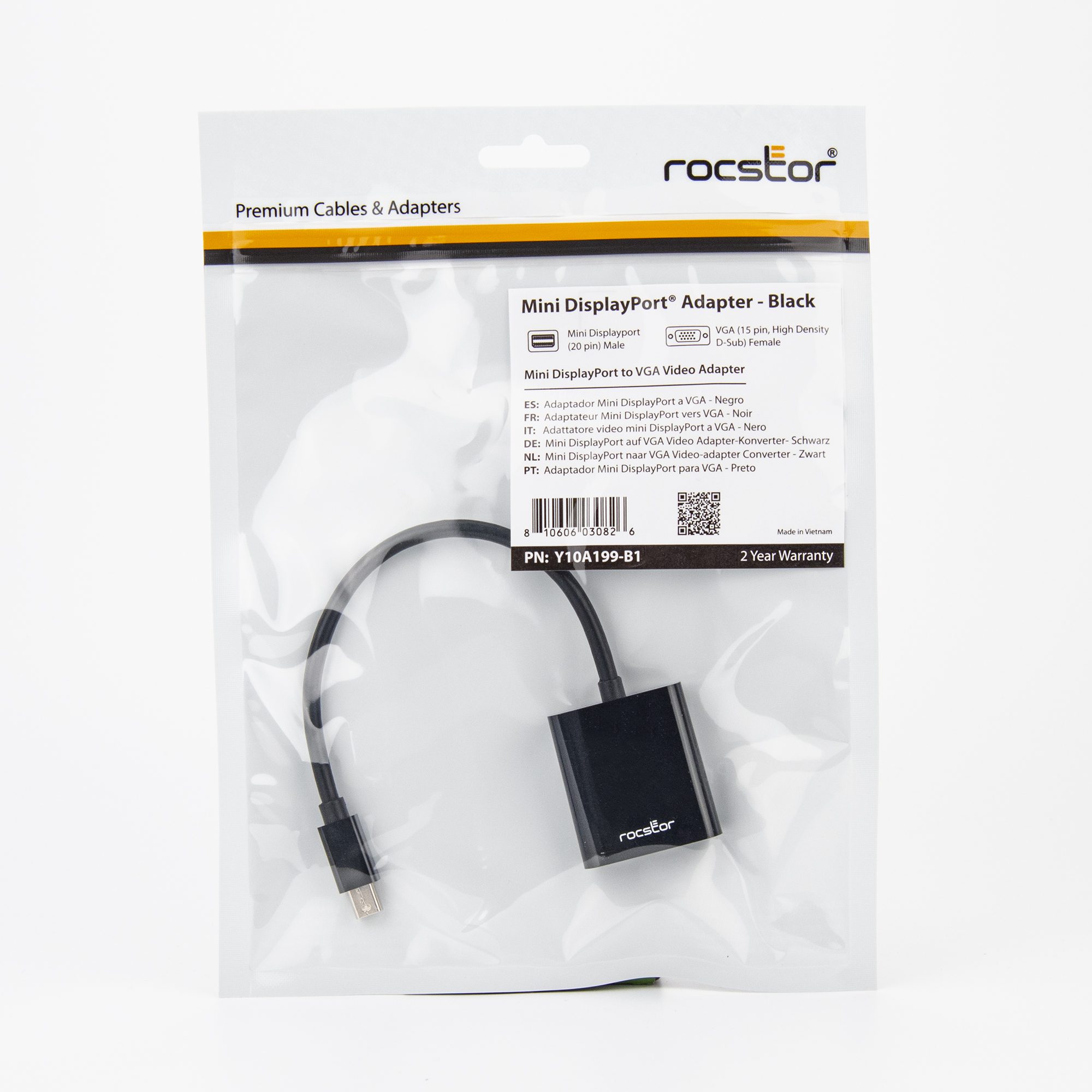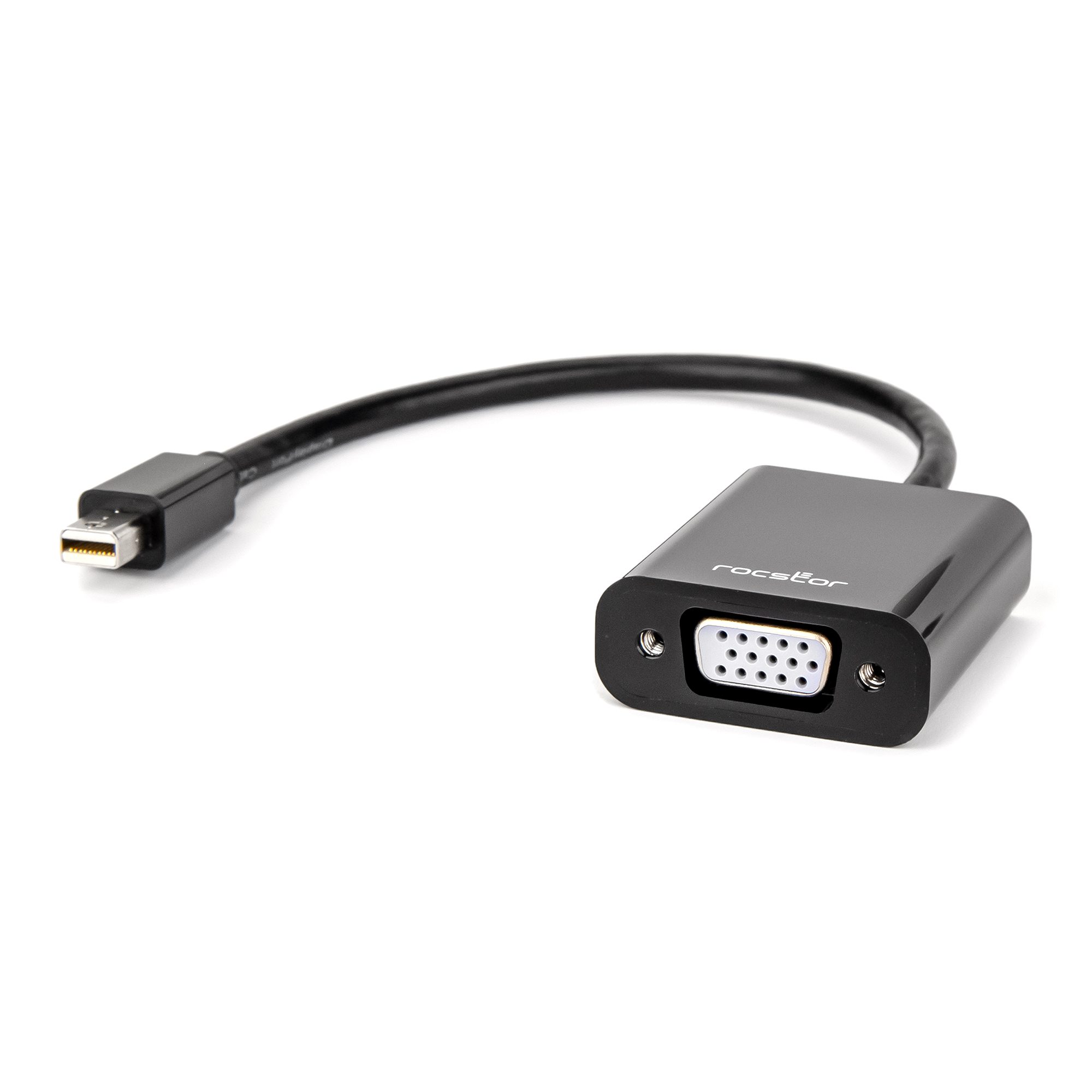 Rocstor Premium Mini DisplayPort to VGA Video Adapter – M/F – For connecting a VGA display to a Mini DisplayPort on a Mac or PC computer – Compatible with mDP DisplayPort on MacBook®, MacBook® Pro, Microsoft® Surface®, Surface® docking stations, Computers or Tablets with Mini Displayport -Resolutions up to 1920×1200 – Thunderbolt® 1 & 2 compatible – Black