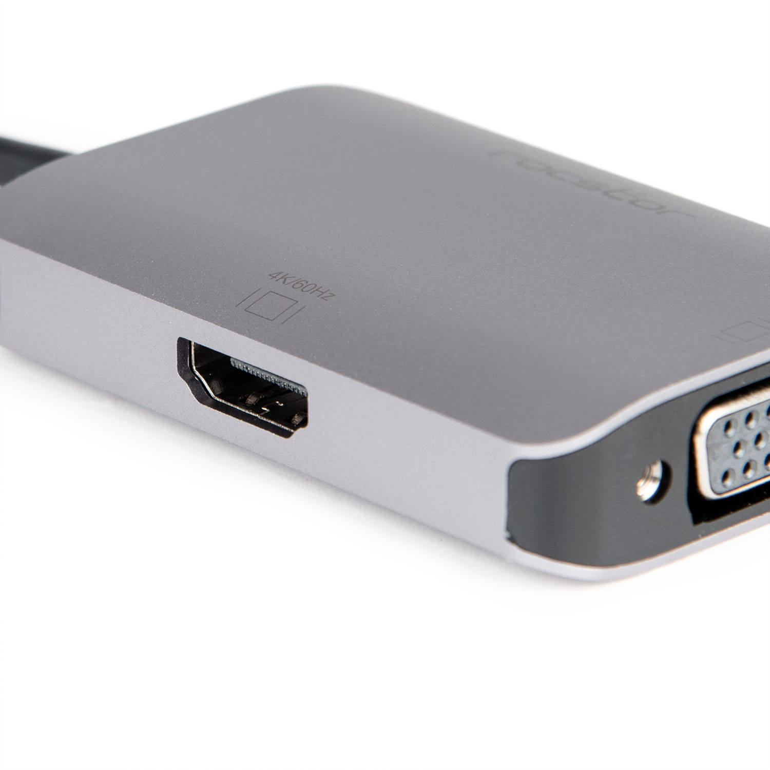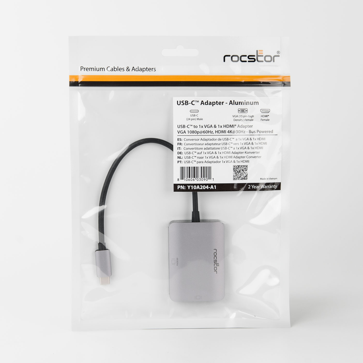 This plug-and-play adapter requires no additional drivers or external power source, making setup effortless. Simply connect it to a USB-C or Thunderbolt 3/4 port, and instantly output to both an HDMI and VGA display. The durable construction and high-performance chipset ensure reliable signal transmission with no compromise in quality. Designed for professionals in business, education, and creative industries, it provides a practical and lightweight solution for dual-monitor setups in offices, classrooms, and on the go. Backed by Rocstor’s 2-year warranty and lifetime technical support, this adapter guarantees long-term reliability and support for any workspace.