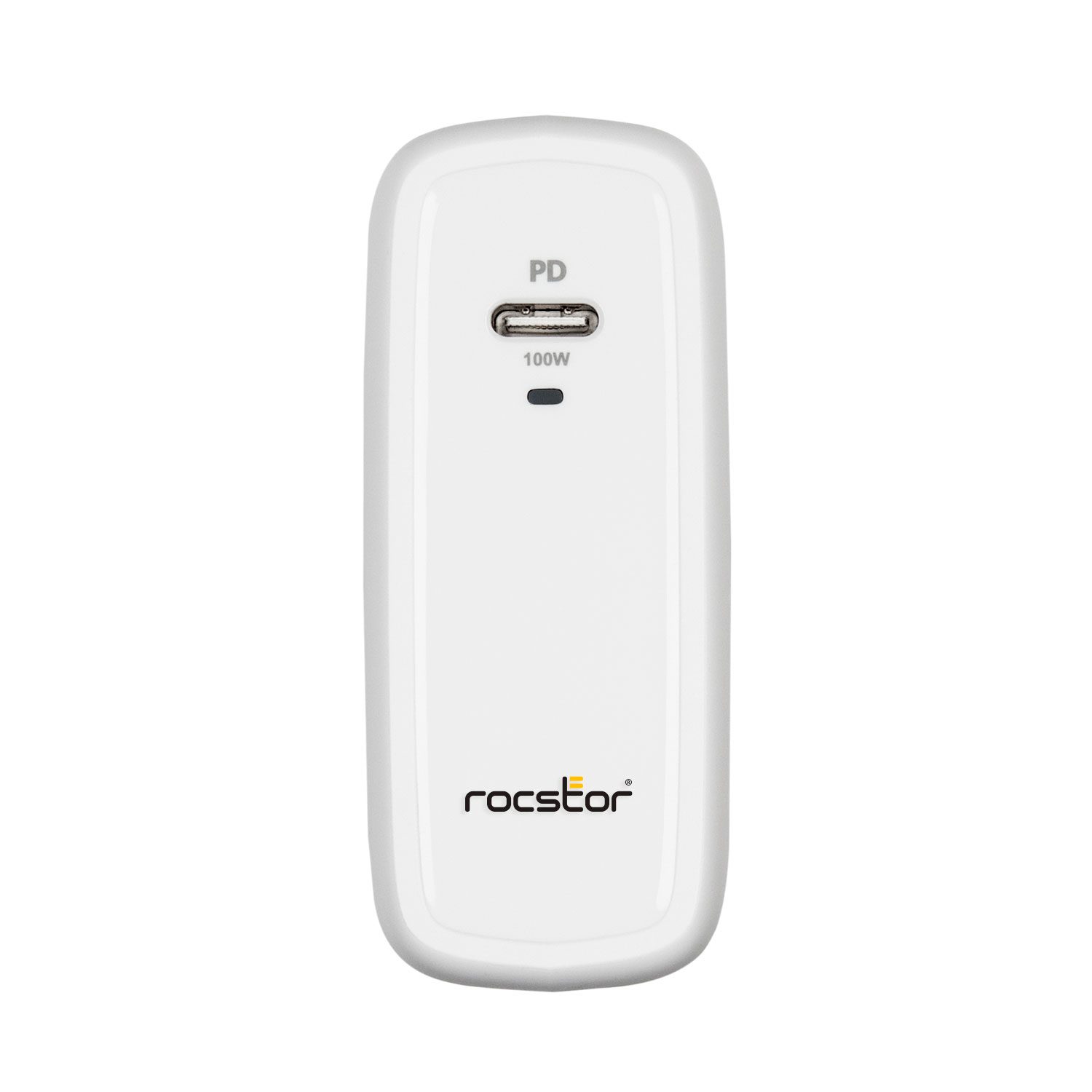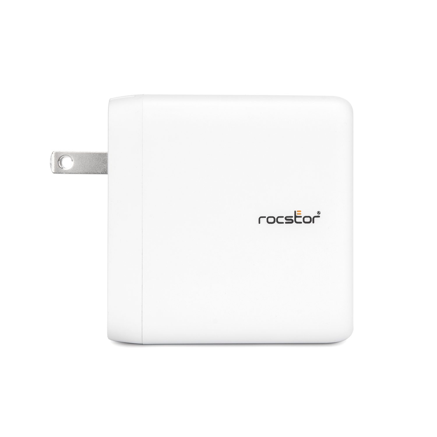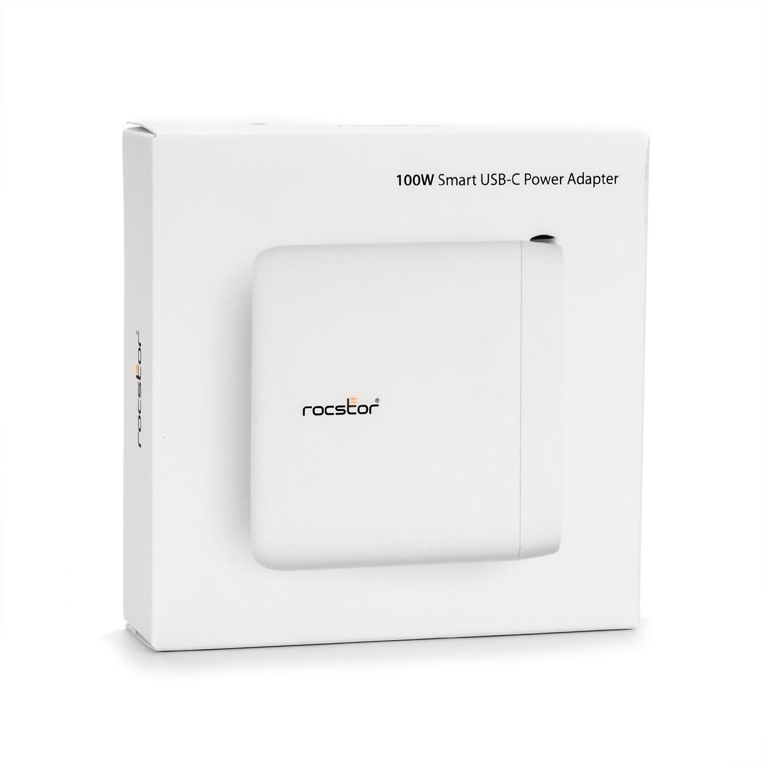 | Marketing Information | Rocstor 100W Smart USB-C Power Adapter offers charging compatibility with numerous USB-C devices such as Apple® MacBook Air® 13', MacBook Pro® 13' (61W), MacBook Pro® 14' (67W), MacBook Pro® 15.6' (87W), MacBook Pro® 16' (96W) charging power requirement. This versatile smart power adapter can charge any HP®, Lenovo®, Dell and Chromebook™ devices that utilize up to 100W power. Rocstor's 100W Smart power adapter automatically adjusts to your device power requirement up to 100W. This travel and compact charger is rugged, light and it is able to charge laptops, iPad®, tablets, cellular phone, earphones and everything else with a USB power input up to 100W. You can take advantage of this fast power adapter to charge your Apple® iPhone®, Samsung Galaxy®, or Google® Pixel® phone and tablets. The slim and compact design charger measures only 2.75' x 2.66' x 1.17' (70 x 67.6 x 29.5 mm) and features a foldable plug. The Rocstor 100W has the latest GaN (Gallium Nitride) Charging Technology and it holds the UL, FCC/CE certifications for the máximum safety protocols. It has a more efficient current transfer, which translates to less power loss to heat. Backed by Rocstor's 1-year warranty and lifetime technical phone support.