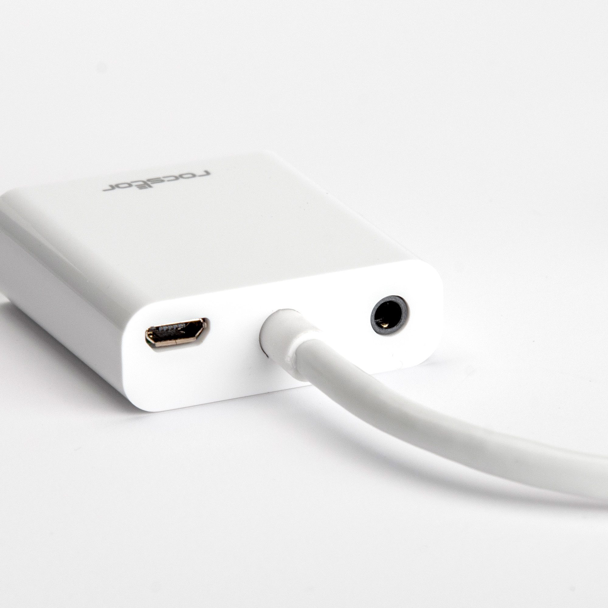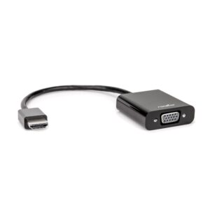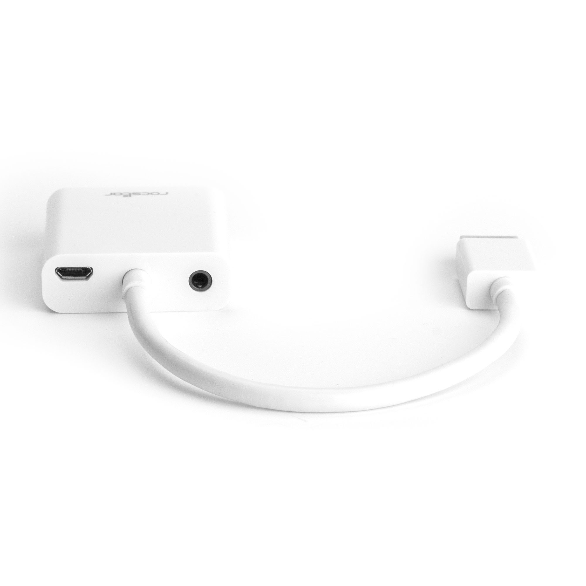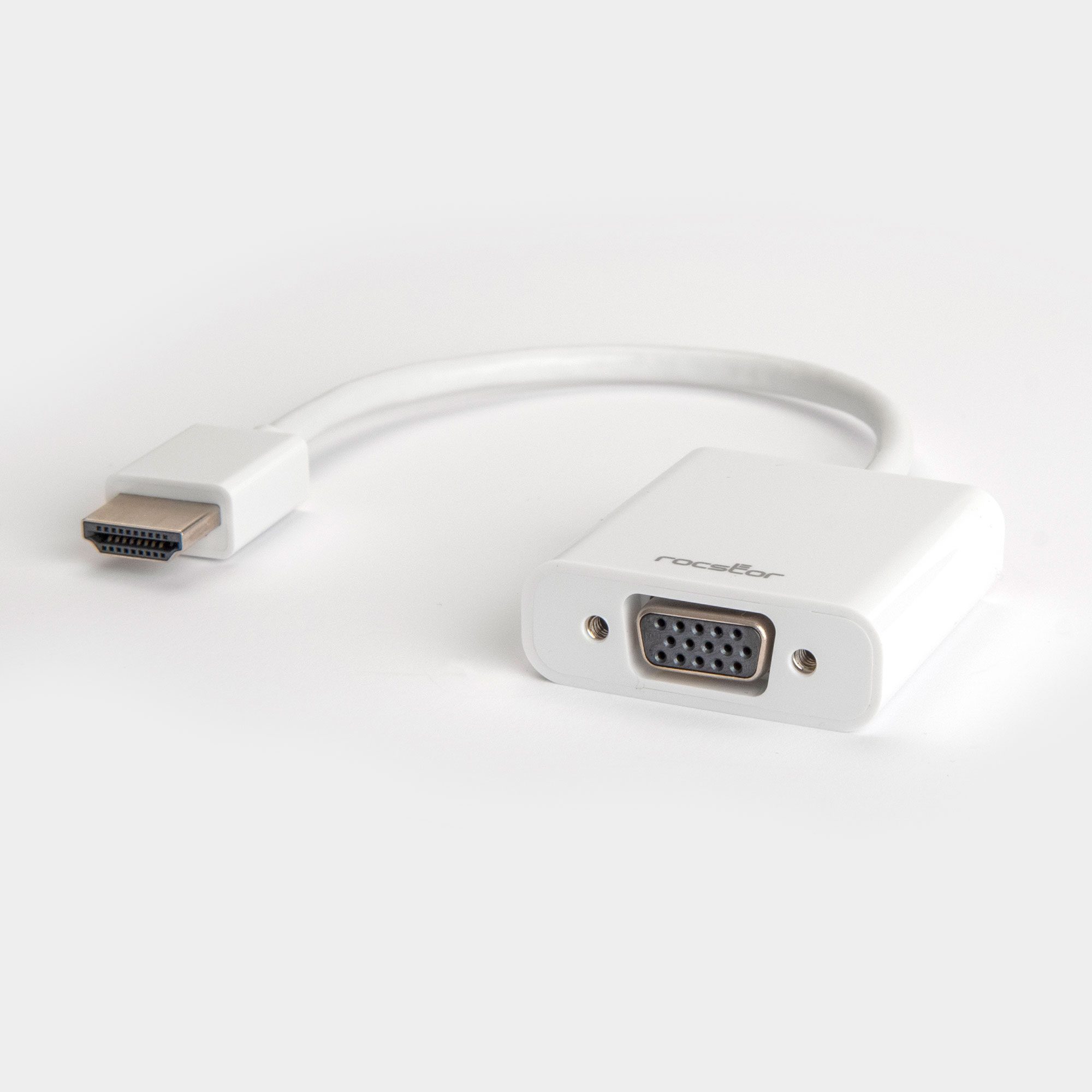 HDMI to VGA Adapter Converter M/F – White. The Rocstor Premium HDMI to VGA adapter enables you take video content from your laptop, tablet, or Desktop PC and display it on any monitor, projector or HDTV featuring a VGA input. With no need for an external power source, and support for resolutions up to 1080p (1920×1080), this active HDMI to VGA adapter offers a compact and portable solution for connecting a High-Definition VGA display. Rocstor Premium cables are built strong and feature a compact design. Measuring 6 x 1.6 x 0.64 (L x W x H) inch, this plug-and-play white adapter is easy to use and extremely useful for presentations for clients or movie nights with friends. It also allows you to enjoy your display content or movies on a home projector, mirror your desktop for an expanded show presentation at work, home, or school.