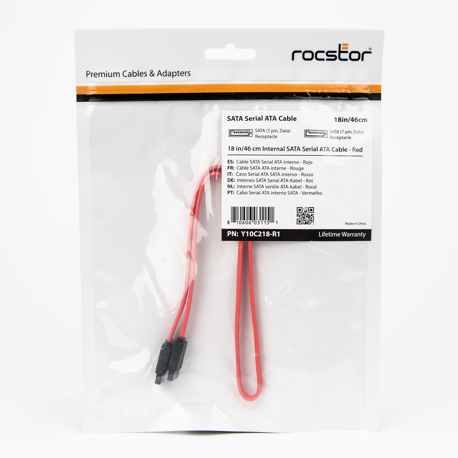 Rocstor Premium 18in SATA cable allows you to connect SATA drives. Designed with a low profile design that is flexible which improves airflow, lessens disarray in your computer case, and is lasting and reliable. Resulting in an organized computer case with a cool temperature and optimal performance. The SATA18 Serial ATA Cable has two 7-pin data receptacles and supports full SATA 3.0 bandwidth of up to 6Gbps when used with SATA 3.0 compliant drives.Backed by Rocstor Lifetime Warranty