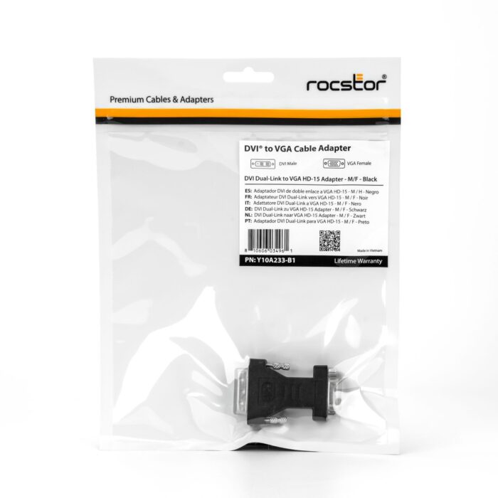 Rocstor Premium DVI® to VGA Cable Adapter, Rocstor Premium DVI-I to VGA Adapter (M/F) is the perfect solution to convert a DVI Male connector to a VGA female connector which supports resolutions of up to 1920×1080. Rocstor offers a premium quality and durable adapter with high quality materials to which guarantees dependability and durability. This DVI to VGA adapter is backed by Rocstor’s lifetime warranty.