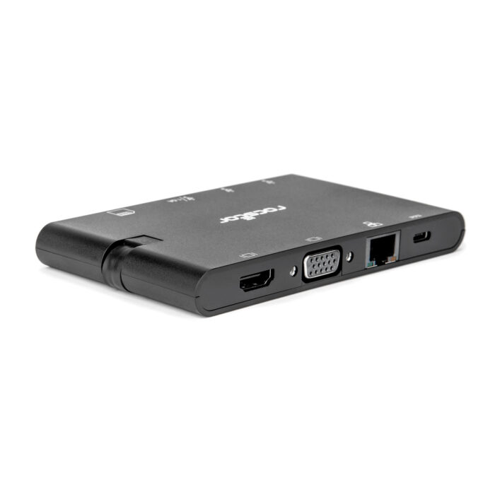 Rocstor Premium USB-C Multiport Adapter – USB Type C Ultra-mini Dock with HDMI 4K 30Hz or VGA Connection, 2x USB 3.0, 1x USB-C Data Port, 1x USB-C Up to 100W Power Delivery (PD) Passthrough – Gigabit Ethernet GbE, SD/microSD (TF) – USB-C Multiport adapter with 4K 30Hz HDMI or 1080p VGA – 2x USB-A 3.0 (1x USB-A support BC 1.2 1.5A fast-charge) – Compatible with Windows®, macOS®, ChromeOS®, iPadOS®, Android® – No drivers required – Black