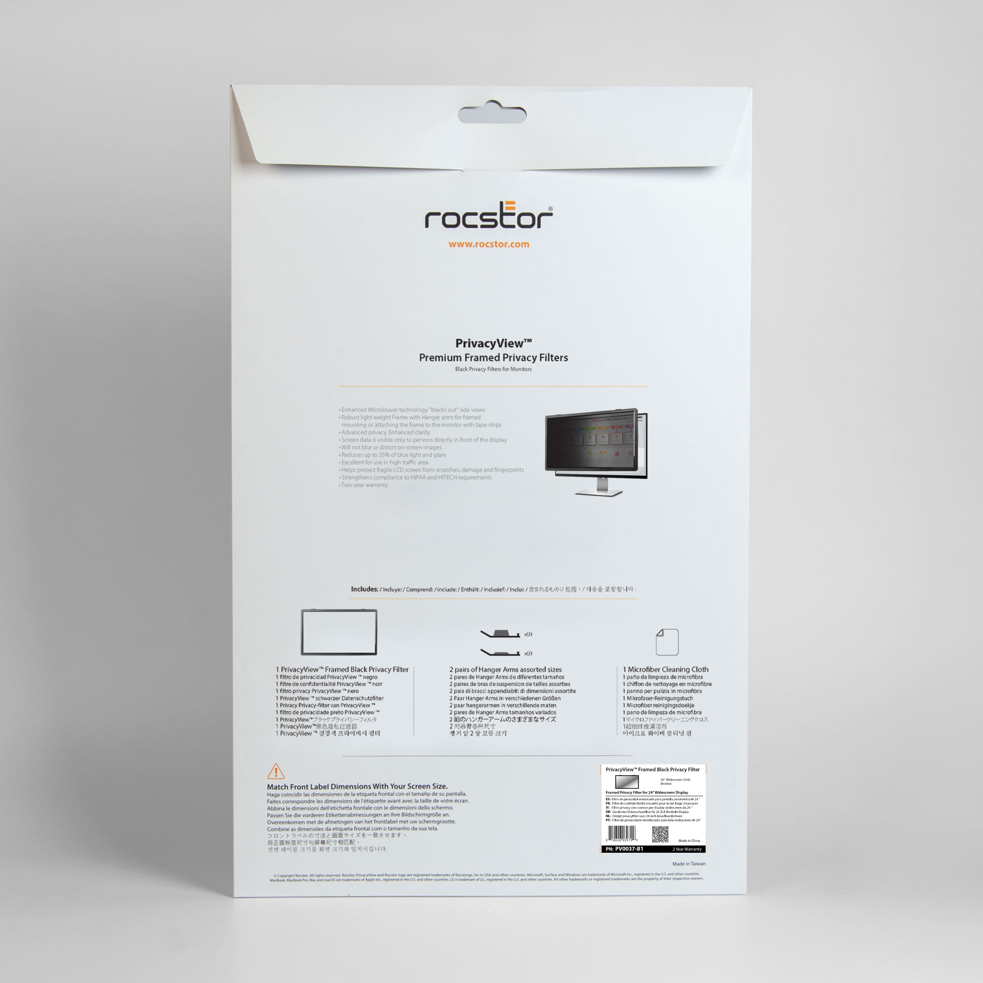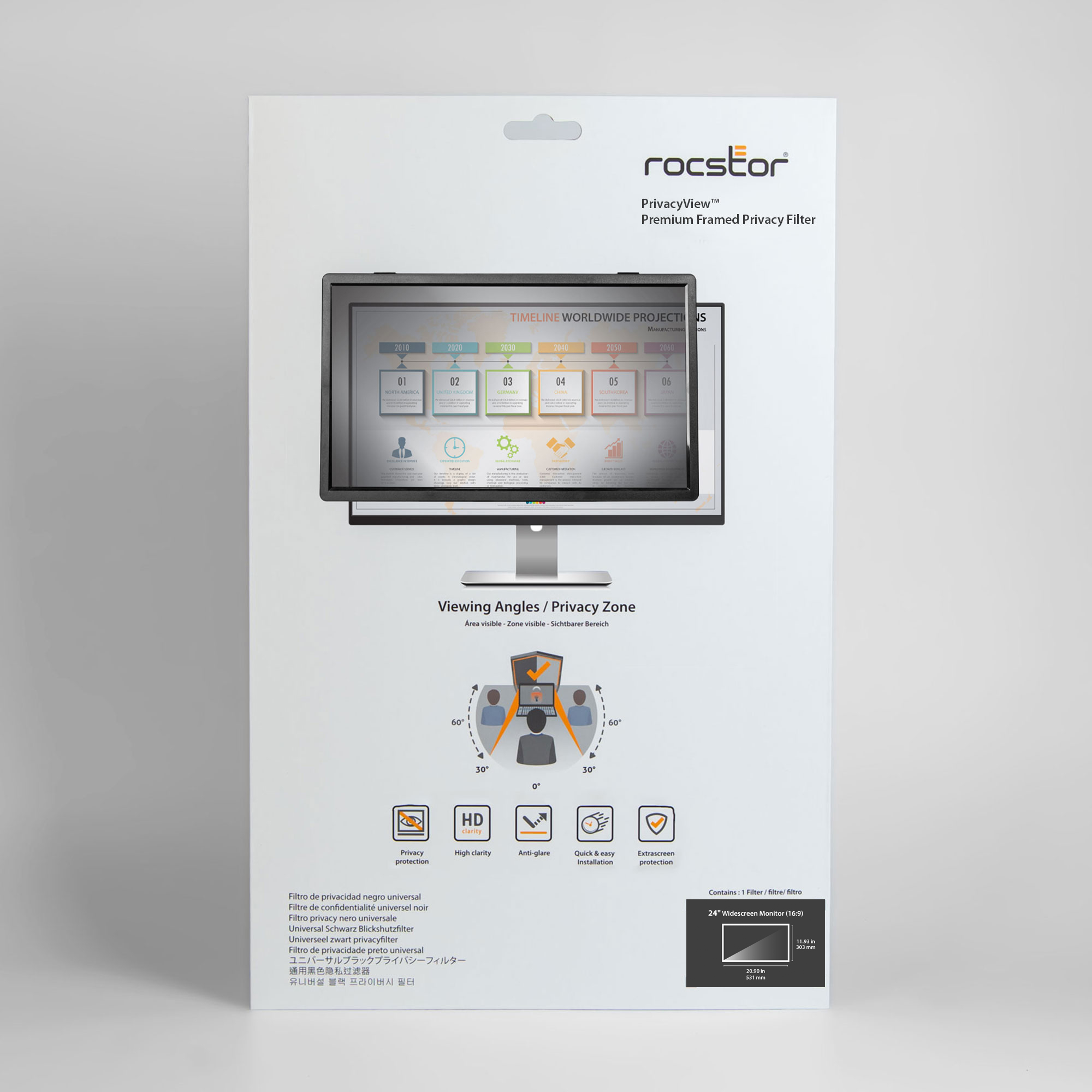 | Marketing Information | The Rocstor PrivacyView™ premium Framed privacy and protection filters provide a whole new level of security and privacy for your monitor. Rocstor's Framed privacy filters are reliable and extremely easy to attach and remove from your monitor with its robust hanger arms. The framed filters provide the best anti-glare and anti-reflective features available and deliver high-contrast, high-clarity for an exceptional visual experience. Rocstor 24' Framed filter with its landscape 16:09 aspect ratio privacy screen delivers the most advanced Microlouver Privacy Technology. The PrivacyView™ filters protect from visual hackers and at the same time provides an amazing clear image for your direct view. Rocstor's advanced Privacy technology protects your information with tiny vertical blinds that are built on the surface of the filter which narrows the viewing angle. The information on your display would be only visible directly in front of the display up to 30 degrees away from the center of the screen and the sides are blacked out from outside of 60-degree viewing angle.