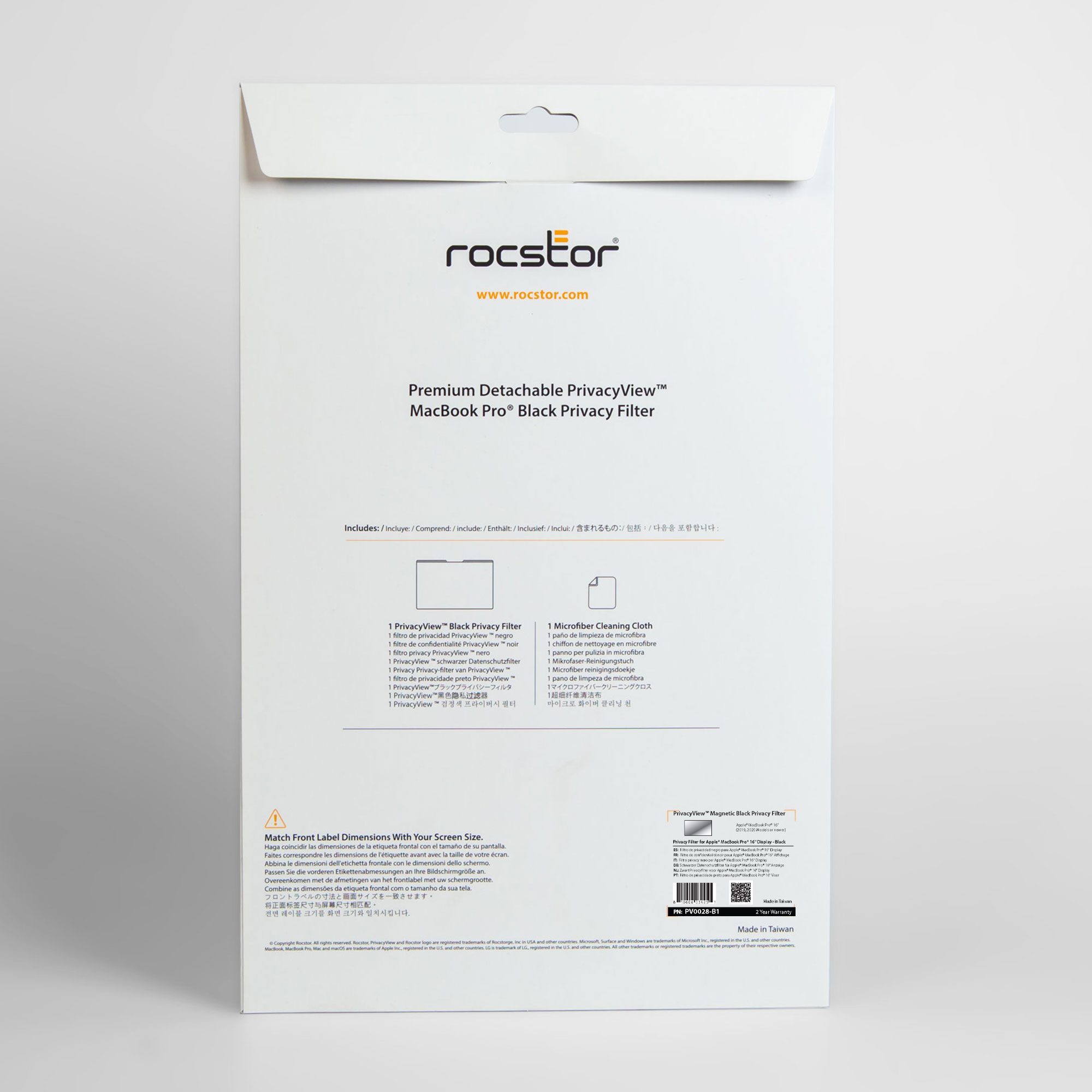 Marketing Information The Rocstor PrivacyView™ premium privacy and protection unframed filters provide a whole new level of security and privacy for your Apple® Macbook Pro® 16' (2019, 2020, and 2021 models). Rocstor's new Apple® Macbook Pro® 16' detachable magnetic filter delivers the most advanced Microlouver Privacy Technology. The new magnetic privacy filters from Rocstor can be easily installed and removed. Just place the filter on the Macbook Pro® and the strong magnetic strip on the filter securely and safely attaches to the top of the display. The PrivacyView™ filters protect from visual hackers and at the same time provides an amazing clear image for your direct view. Rocstor's advanced Privacy technology protects your information with tiny vertical blinds that are built on the surface of the filter which narrows the viewing angle. The information on your display would be only visible directly in front of the display up to 30 degrees away from the center of the screen and the sides are blacked out from outside of 60-degree viewing angle. Rocstor filters reduce display blue light by 35%.