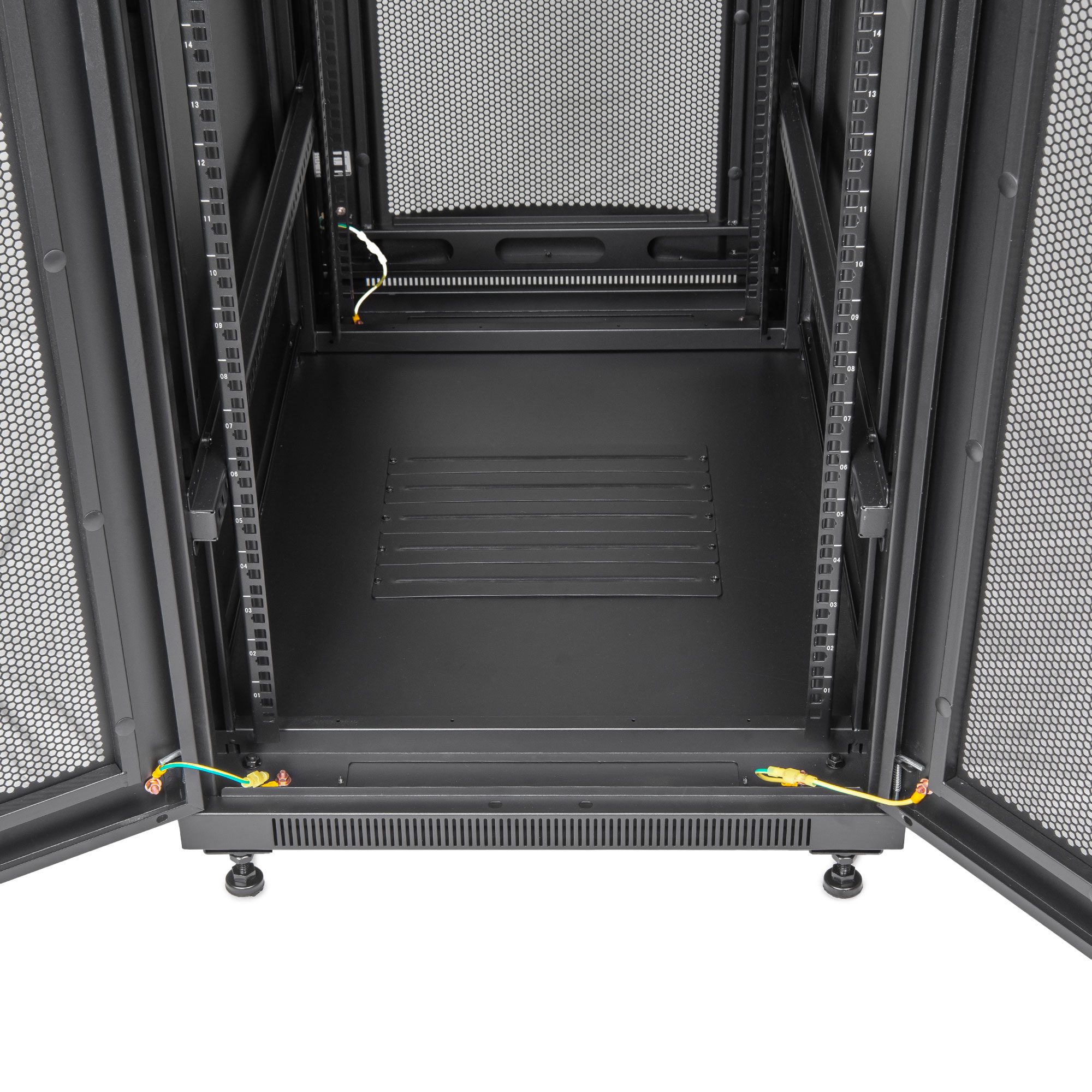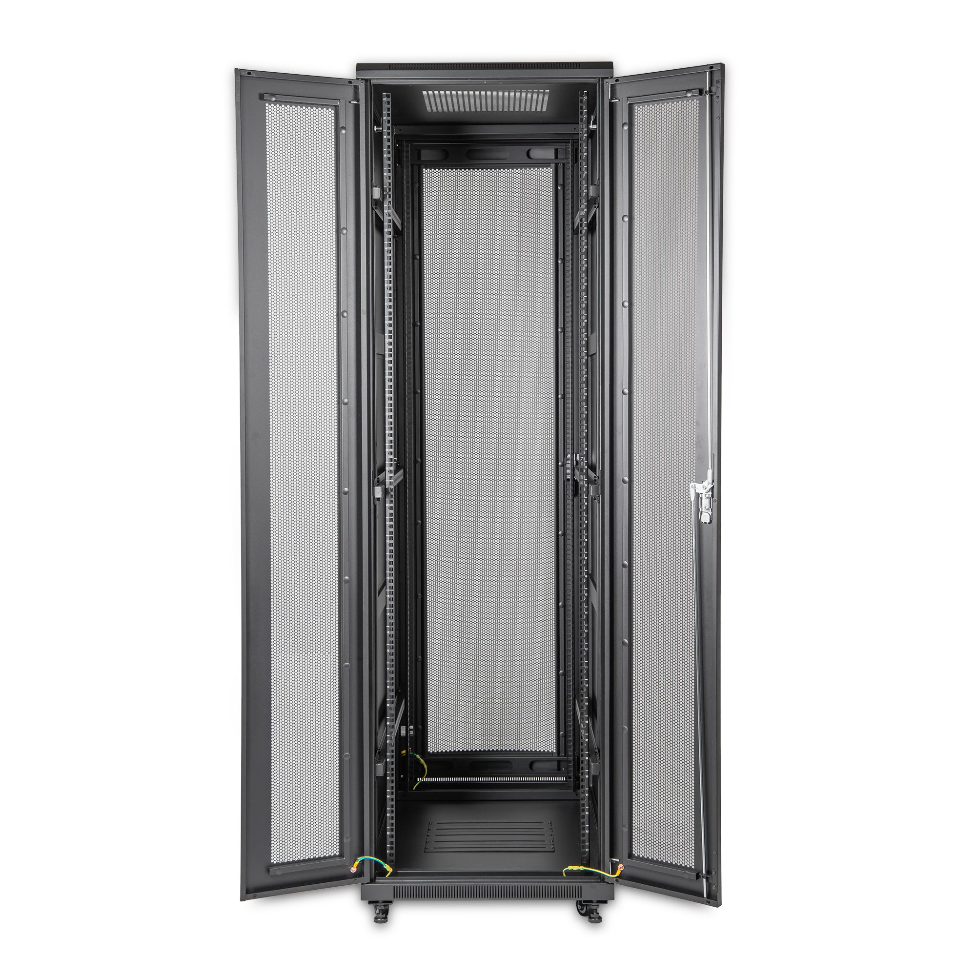 - Secure, Locking Access Panels: Reversible front/rear doors and quick-release side panels protect equipment from unauthorized access.