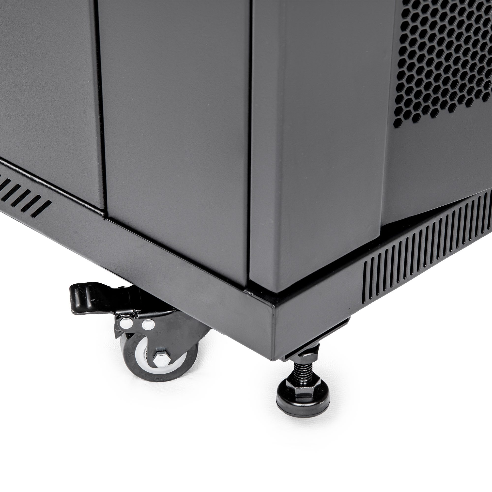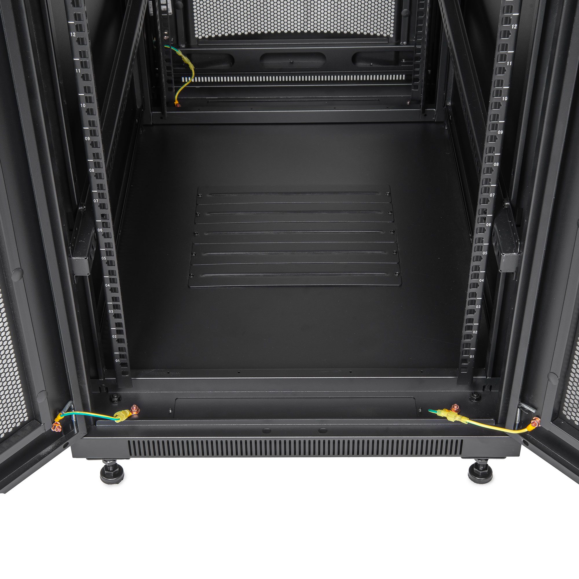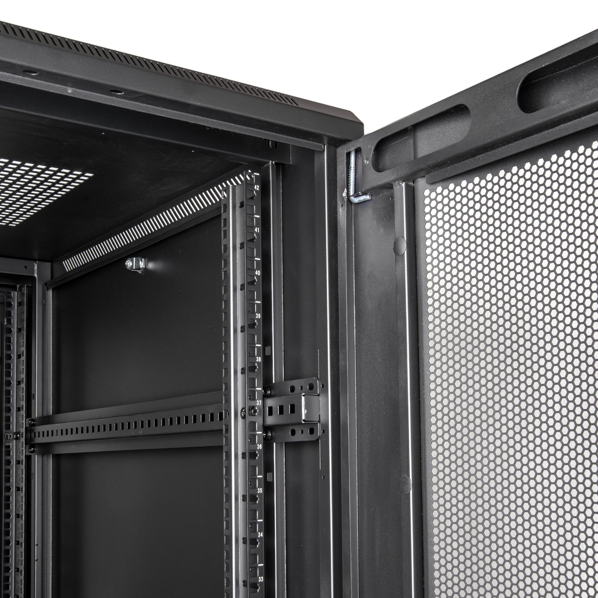 Optimized airflow keeps your equipment running at peak performance. Perforated front and rear doors allow cool air to enter and warm air to exit, maintaining consistent front-to-rear cooling. Side vents and integrated top ventilation support natural heat dissipation across the entire cabinet, helping servers and networking gear operate more efficiently—especially under intense workloads.
