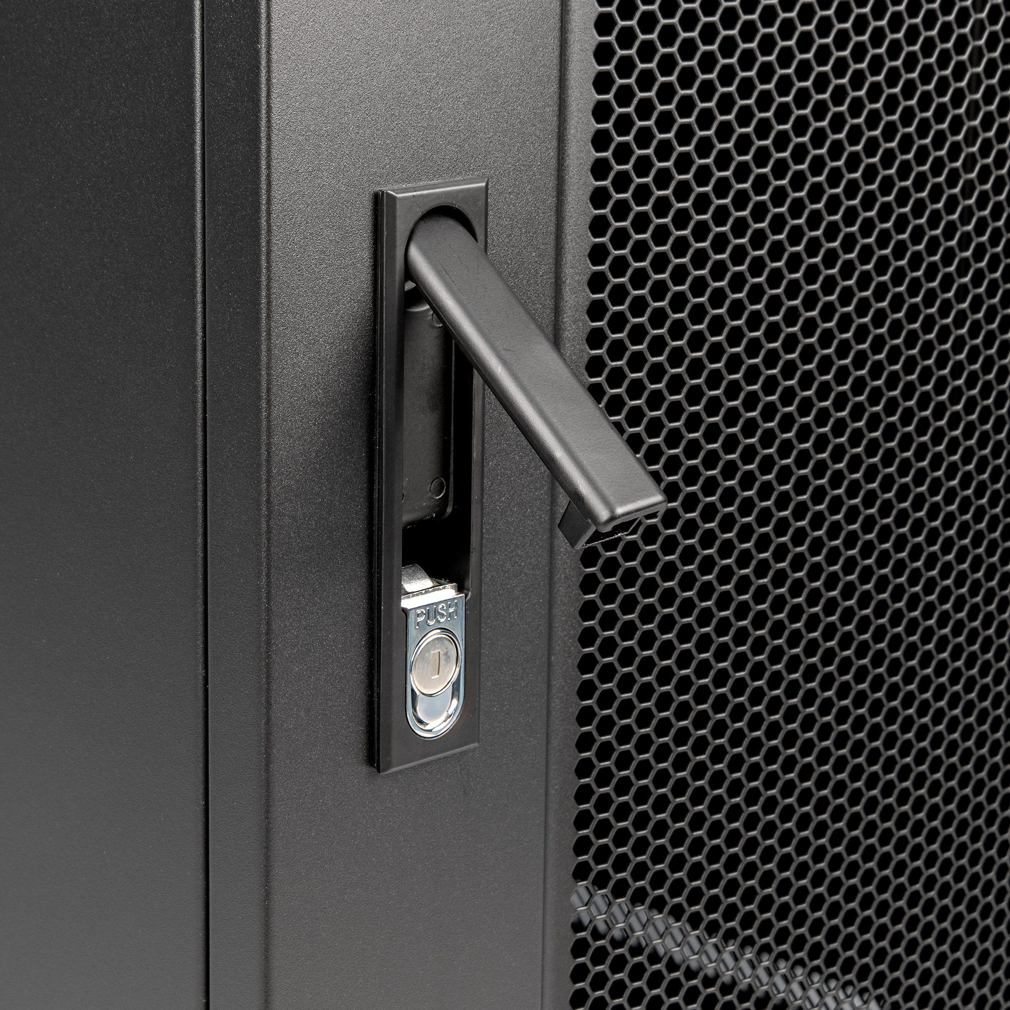 - High-Efficiency Airflow: Perforated doors with 65% open space and vented panels promote superior cooling performance.