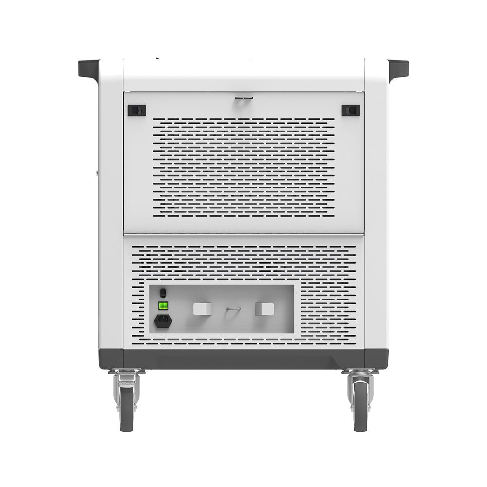 Rocstor's innovative cart design and engineering provide the charging system for easy setup, and secure day to day usage. The rear compartment of Volt SC32 is organized with two banks of 16 outlets, each with 16 cable channels, keeping the cables and power adapters well organized and structured.