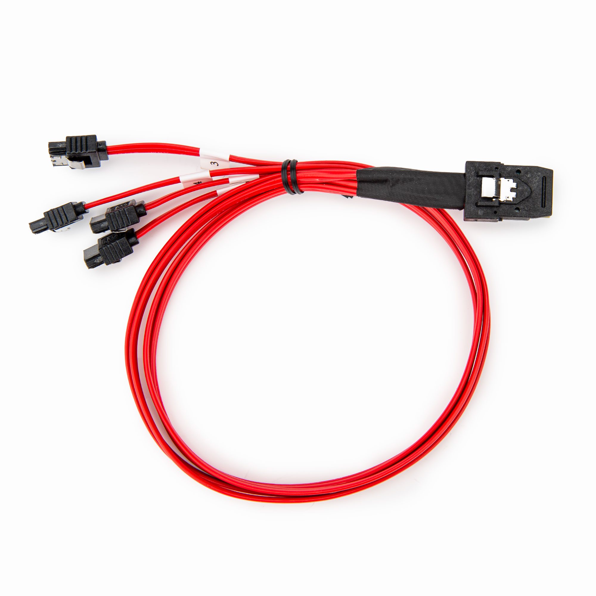 Serial Attached SCSI SAS Cable, 1x SFF-8087 (36-pin plug) to 4x Latching SATA (7-pin) – Red
