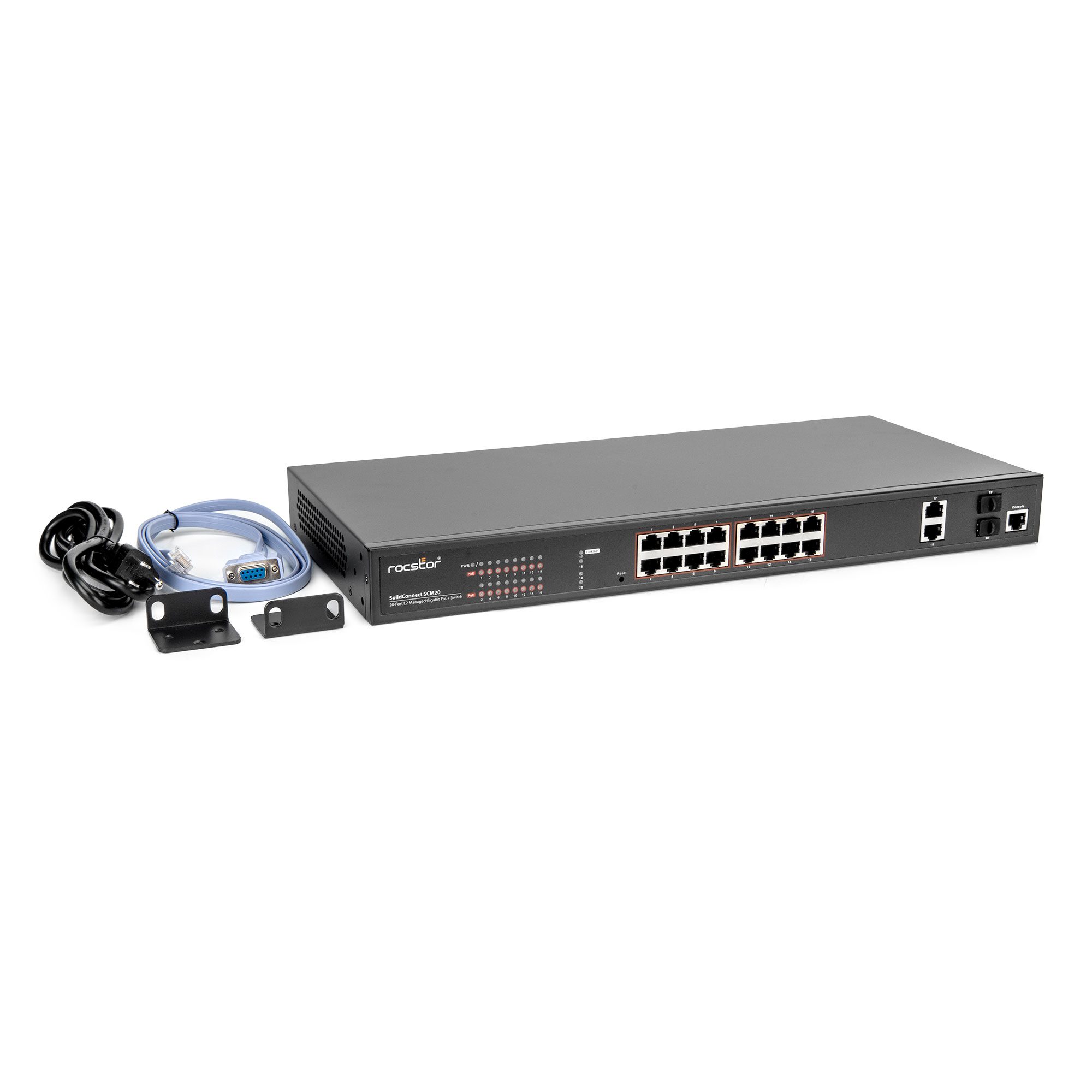 The SolidConnect SCM20 L2 Managed PoE+ Switch stands out with its 16 versatile Gigabit PoE ports (10M/100M/1G), complemented by (2) Gigabit RJ45 and (2) SFP transceiver slots (1 G) for flexible connections. Featuring an easy user interface, the SCM20 simplifies the process of assigning configuration profiles to individual ports with its user-friendly graphical interface. It adheres to IEEE 802.3af/at standards, ensuring seamless integration and providing a substantial 30W power to each port, backed by a robust total power budget of 250W. This switch proves to be a reliable and efficient choice for modern networks, supporting diverse applications from cameras to VoIP and wireless access points. The SCM20 switch integrates an easy-to-use GUI and a simplified user interface for straightforward configuration. Standards Compliance for Seamless Integration: One standout feature of the SolidConnect SCM20 is its meticulous adherence to industry standards. It complies with IEEE 802.3, IEEE 802.3u, IEEE 802.3x, IEEE 802.3ab, IEEE 802.3af, and IEEE 802.3at standards. This commitment ensures the switch seamlessly integrates with existing setups, providing a hassle-free experience for network administrators. Whether deploying the SCM20 in an established network or incorporating it into a new infrastructure, its standards compliance guarantees compatibility and ease of integration. Rocstor Assurance: What truly sets Rocstor apart is not just the quality of our switches but the comprehensive support ecosystem we provide. Delivering cutting-edge hardware backed by an industry-leading warranty, our dedicated support team assists you at every stage of your networking journey, ensuring confidence and peace of mind. With Rocstor switches, reliability and high performance aren't just features; they're the core of a networking solution meticulously crafted for excellence. The Rocstor SolidConnect SCM20 is the epitome of versatility, power, and durability, making it the ideal choice for professional networking environments. Its compliance with industry standards, coupled with advanced features and a robust design, positions it as a dependable solution for businesses and organizations with diverse networking needs. The product's UL certifications, TAA compliance, and Rocstor's 5-year warranty with lifetime technical support further reinforce its reliability and long-term viability. |