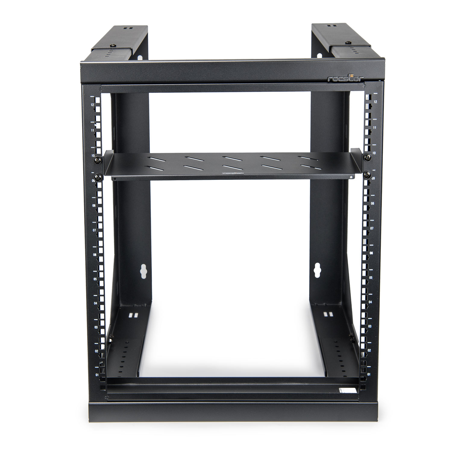 The weight capacity of up to 85 lbs. (38.5kg) makes the Rocstor 12U Wall Mount Bracket suitable for a wide range of equipment, from small networking devices to larger telecommunication equipment. The wall-mounting holes with 12-inch and 16-inch spacing are designed to match standard wall-rack stud spacing, making installation quick and easy. Additionally, the elegant design of the rack helps it blend seamlessly into your workspace, while its wall-mounted design saves floor space in limited space areas, providing a professional and organized storage solution for your equipment. This allows IT users to easily access and configure the equipment, improving efficiency and productivity.