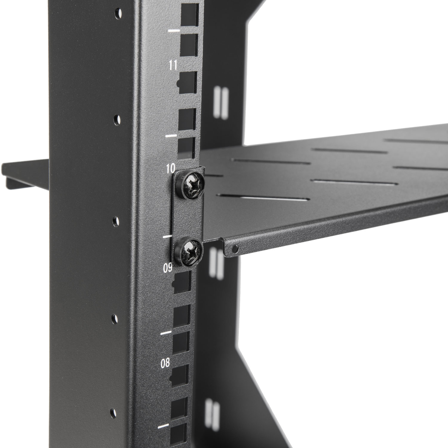 - 2-post rack with punched square holes for equipment mounting