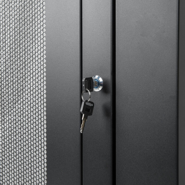 - Locking Doors and Panels: Secure front and side access points protect devices from tampering and unauthorized entry
