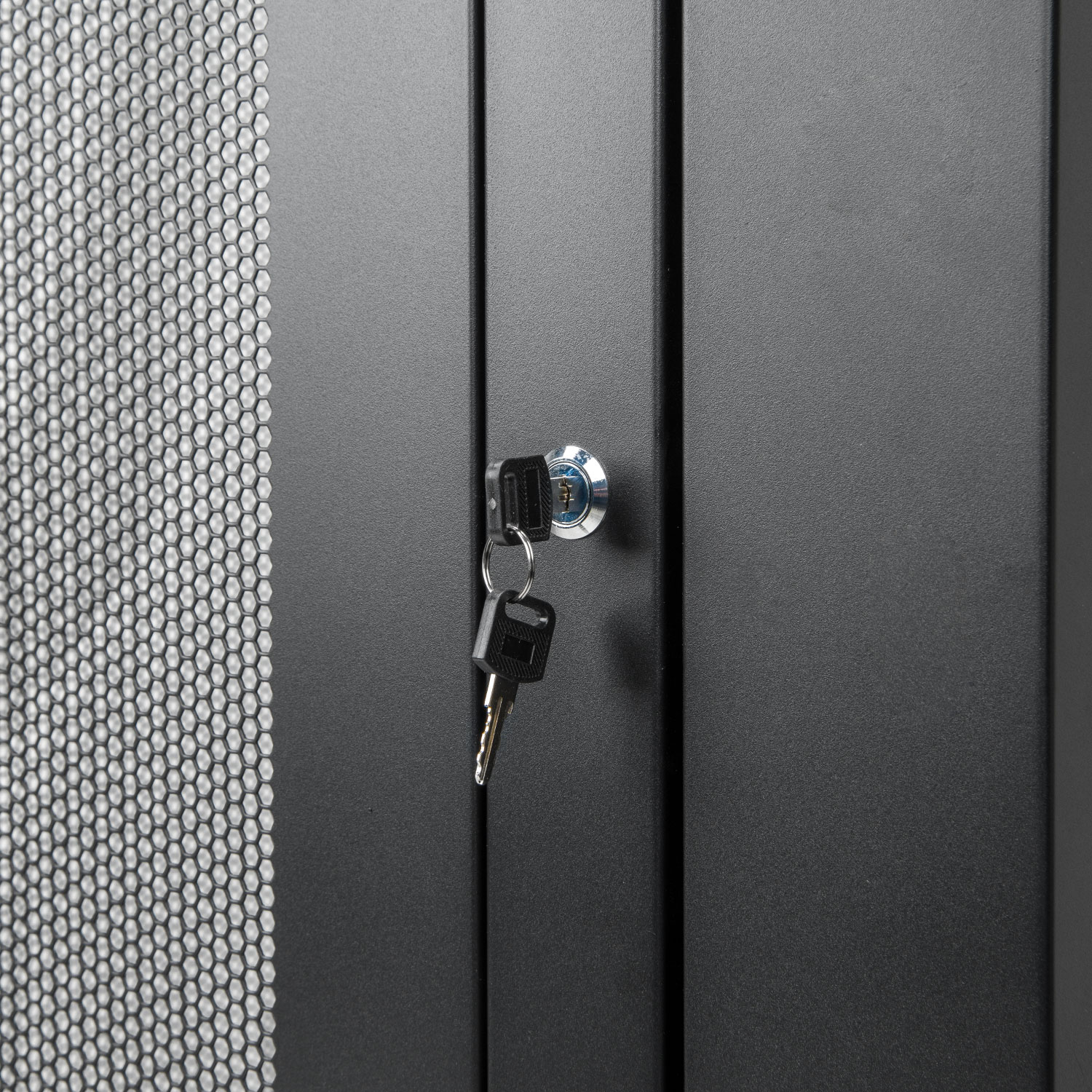 Built from heavy-gauge steel and finished with a durable matte-black powder coat, the SolidRack 18U feels as solid as it looks. It supports up to 250 lbs (113.4 kg) of mission-critical equipment, keeping servers and power systems safely anchored. Locking front doors and side panels protect your infrastructure from tampering or unauthorized access, making it well-suited for PCI DSS and secure environments.
