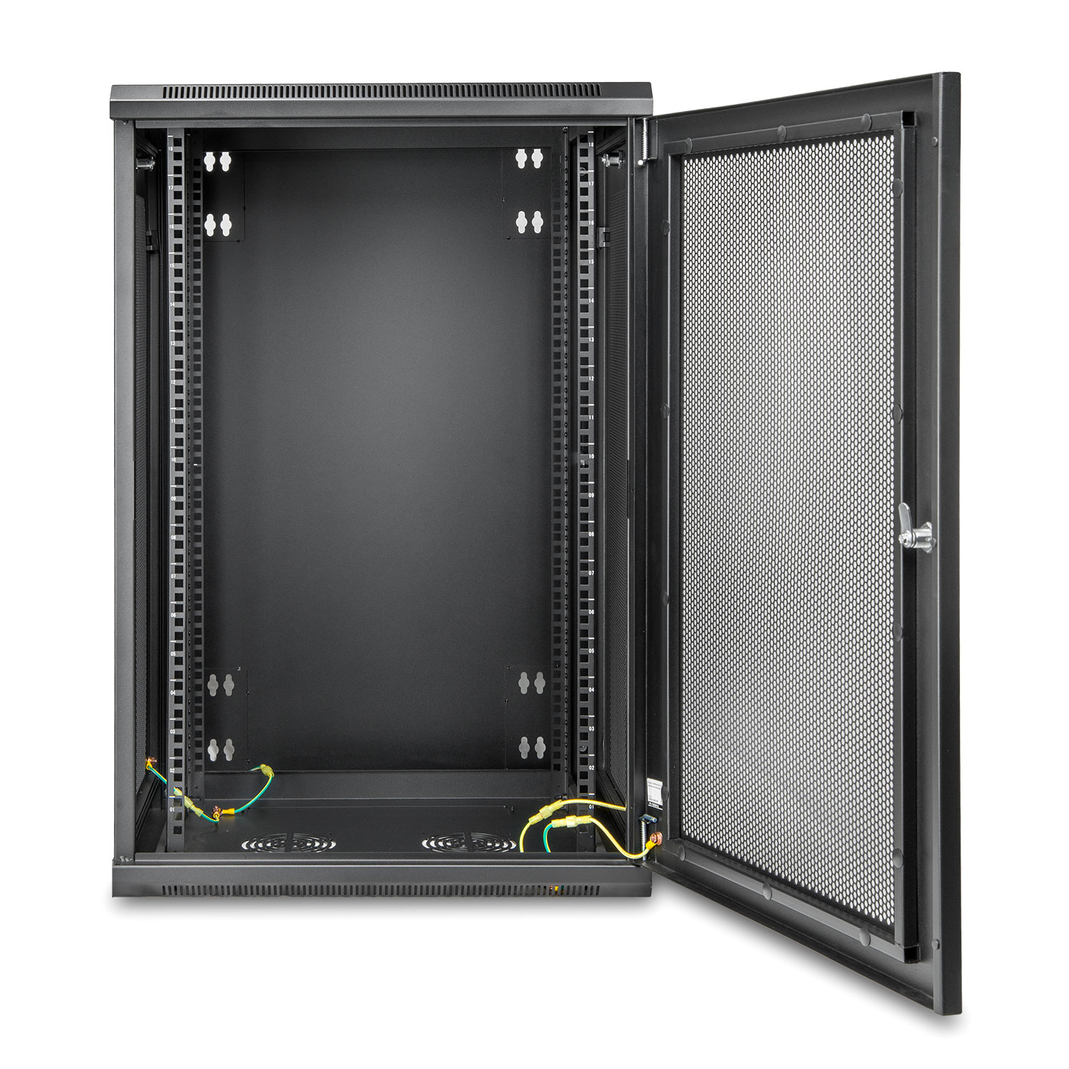 - Space-Saving 18U Wall Mount Design: Ideal for network closets, classrooms, retail spaces, and compact IT environments.
