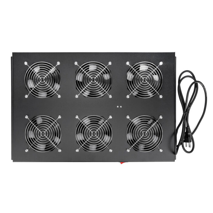 SolidRack Fan Tray for R3100 Rack- Rack Enclosure Cabinet Roof Mount Fan Panel Airflow Management 110v/120V – 5-15P – 6 Fan – For Rocstor SolidRack 42U Rack Cabinet – Black