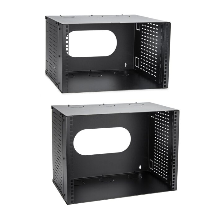 The Rocstor wall mount rack comes with all necessary hardware, including M6 cage nuts, M6 cage screws, and washers, eliminating the need to purchase additional mounting hardware. It is shipped fully assembled and can be quickly installed on the wall by a single professional. The wall-mounting holes on the rack are spaced 16 inches apart and match standard wall-mounting framework. These 6U & 8U Wall Mount Bracket is backed by Rocstor?s 5-year warranty and lifetime phone support.