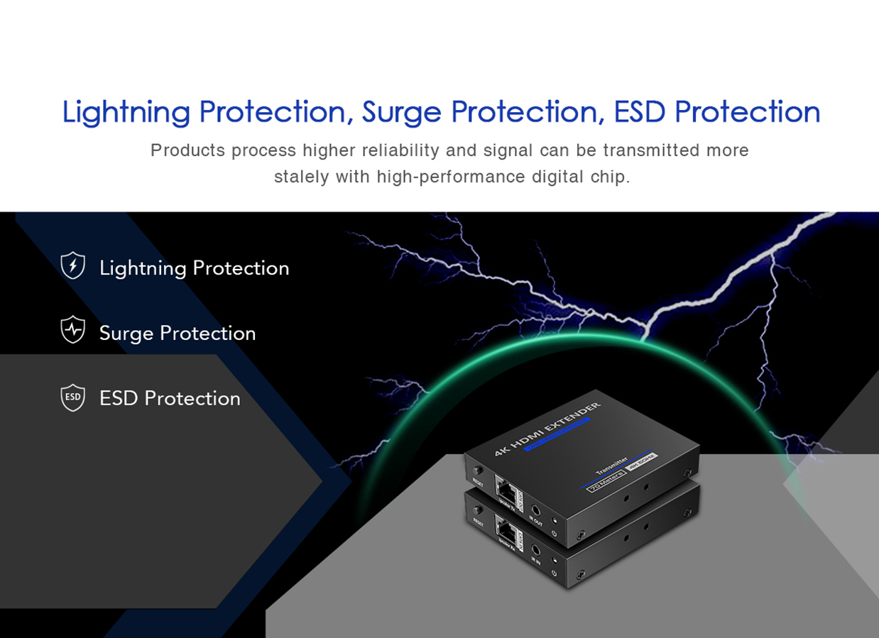 With built-in lightning, surge, and ESD (electrostatic discharge) protection, the Rocstor TrueReach HDMI Extender ensures your valuable equipment remains safe and secure, even in unpredictable electrical environments. This protection safeguards your investment and provides peace of mind.