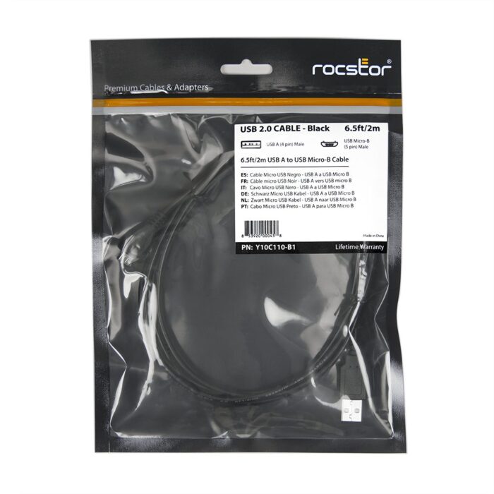 USB-A to USB Micro-B Cable – Charge & Sync Up to 480Mbps – 6.5 ft, Rocstors premium high speed cable is the right plug and play charge and sync cable solution for your cellular mobile phone, tablet, or any other device featuring a USB Micro-B port. Featuring data transfer rate of up to 480Mbps. Durable and long-lasting to accommodate several device lifetimes. Plug into any USB 2.0 port, so you can use it virtually anywhere. Connect to your laptop to charge and sync, use your own wall charger to charge from the wall, or plug into a car charger and charge on the road. Rocstor Lifetime Warranty.