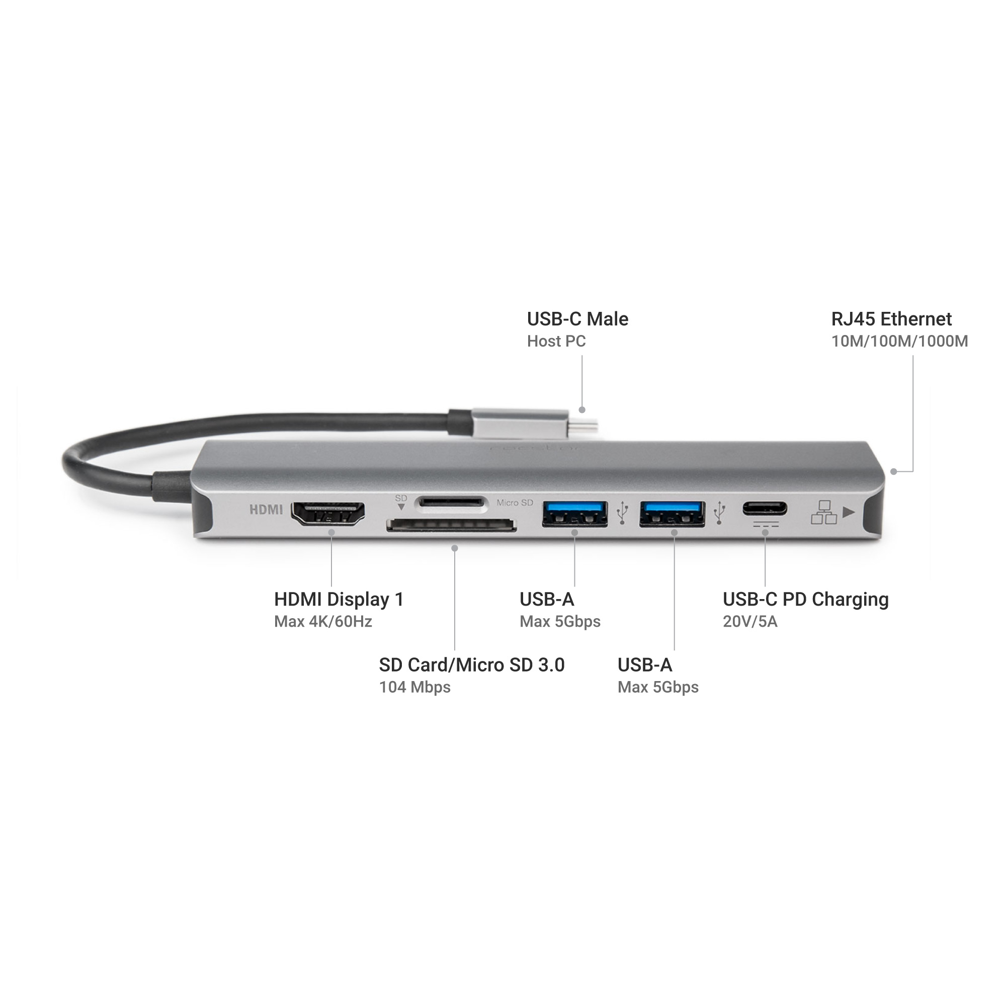USB-C Multiport Adapter – 7-in-1 Hub – USB Type-C Slim Dock to 4K 60Hz HDMI