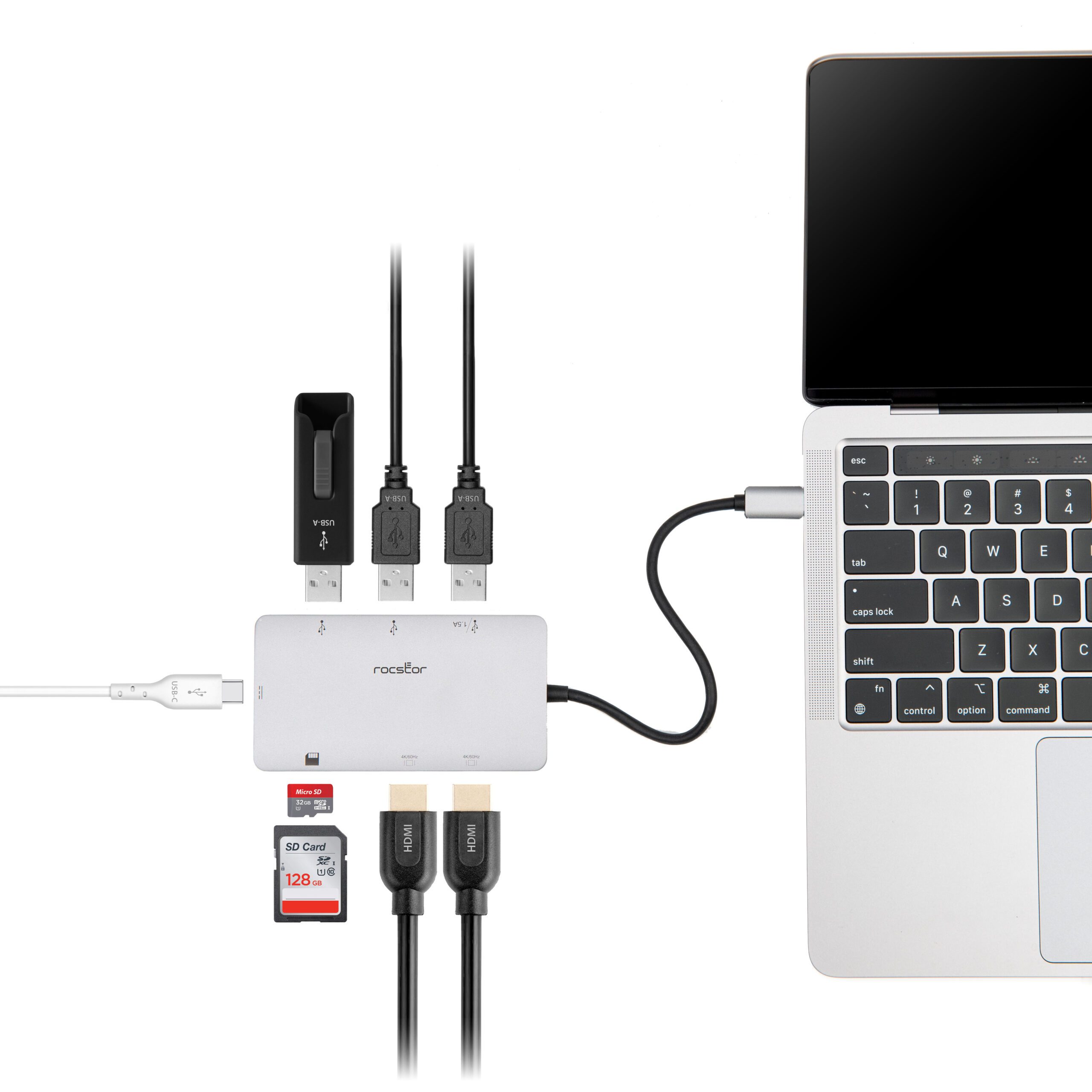 Marketing Information The Rocstor Premium USB-C Multiport Adapter, 8-in-1 Hub is a versatile solution for expanding the connectivity options of Type-C or Thunderbolt 3 or 4 enabled devices. This 8-in-1 hub includes 2 HDMI ports, 3 USB-A ports, dual SD/Micro SD card slots, and a Type-C female port, meeting a variety of connectivity needs. It's perfect for laptops, and PCs with a single Type-C or Thunderbolt 3 / 4 port, seamlessly integrating into your workflow to provide exceptional flexibility and convenience.