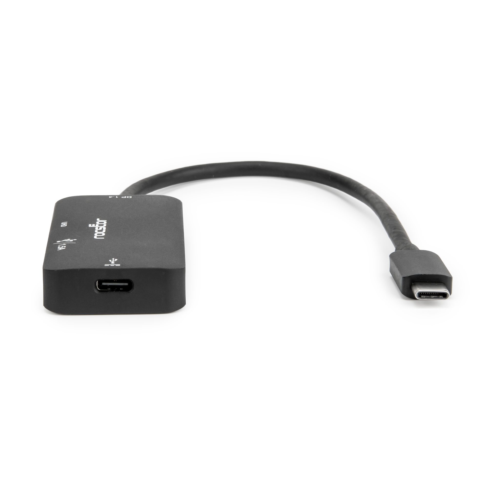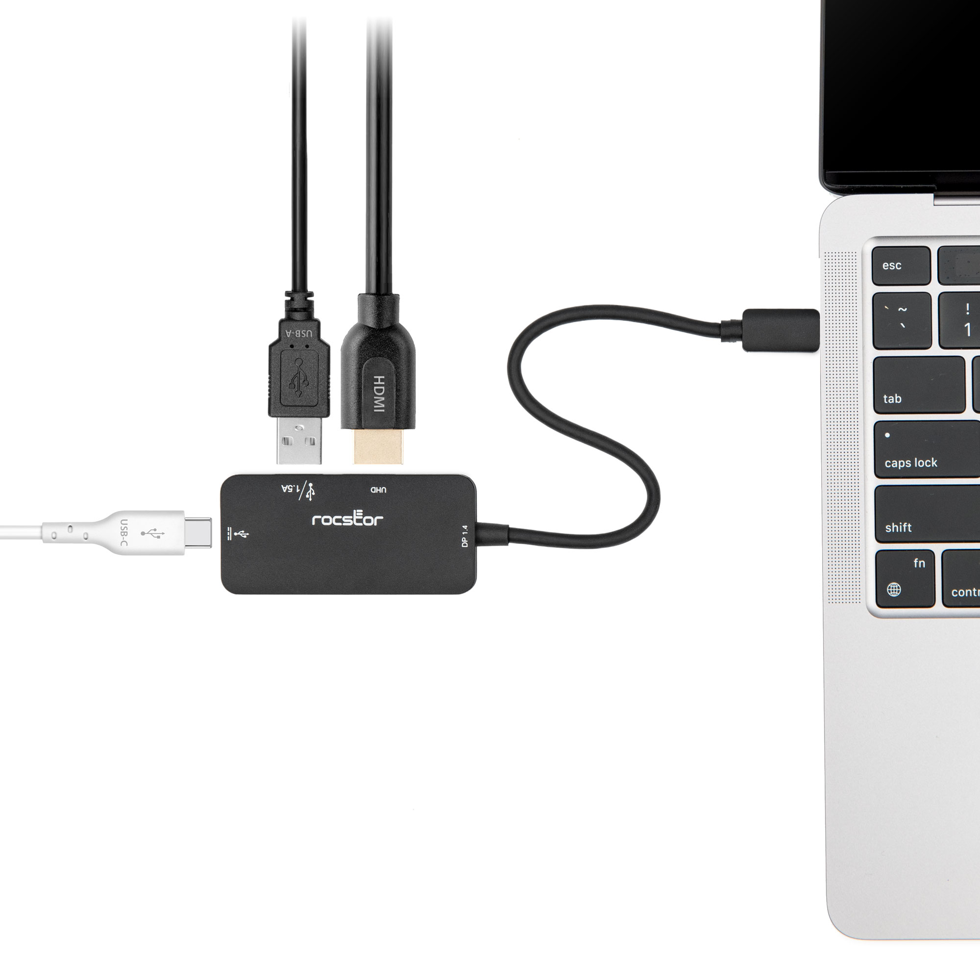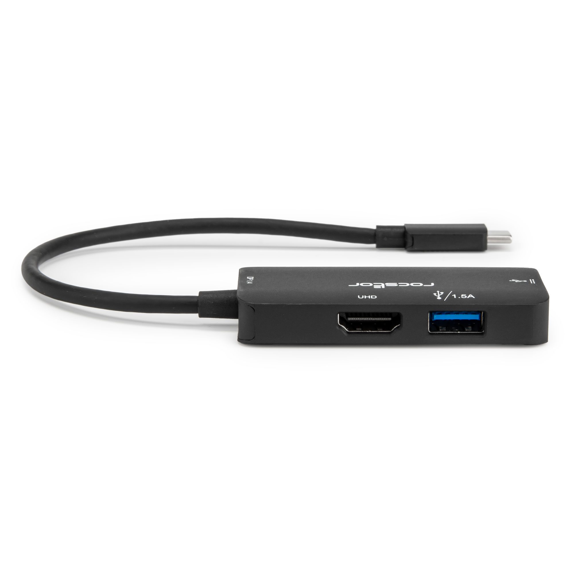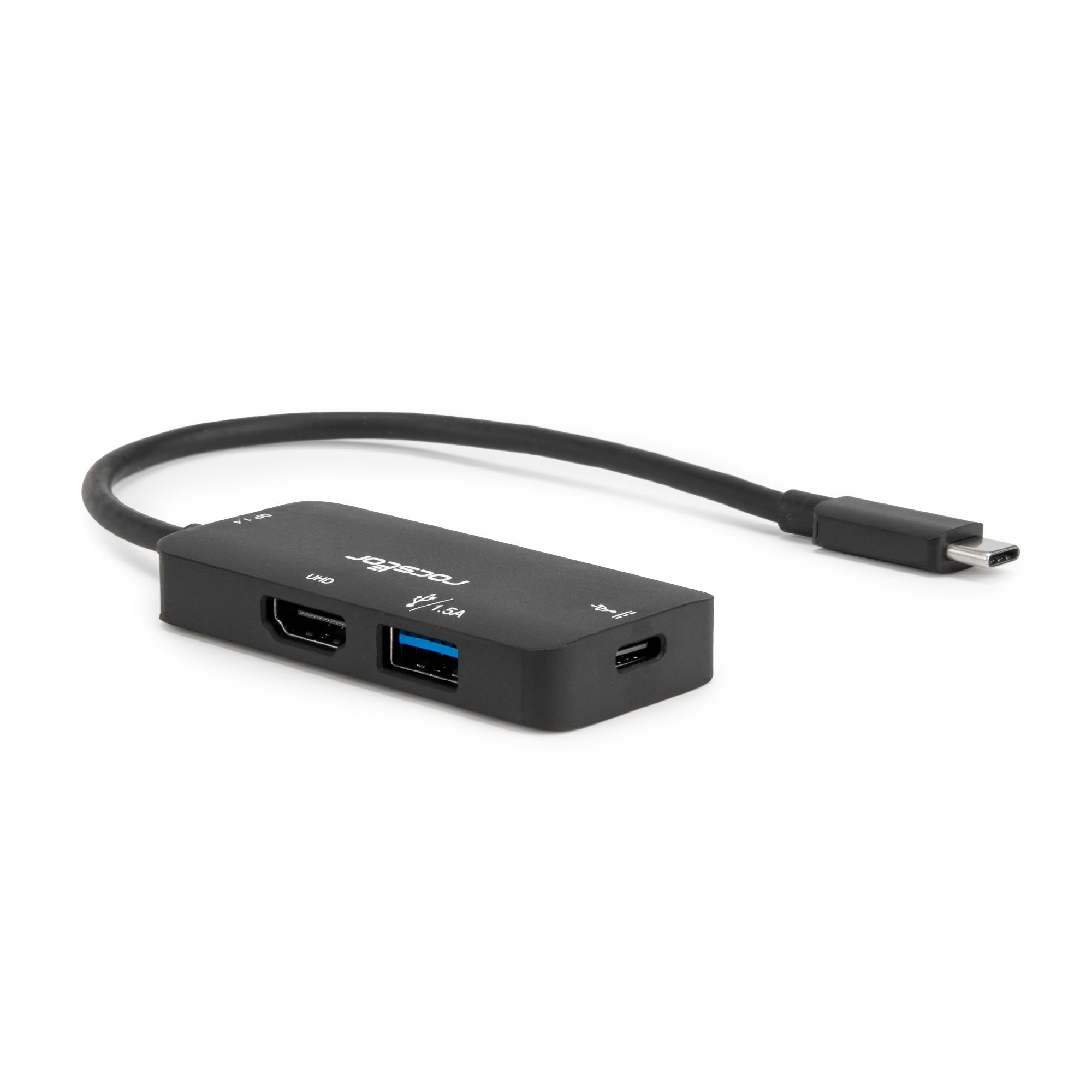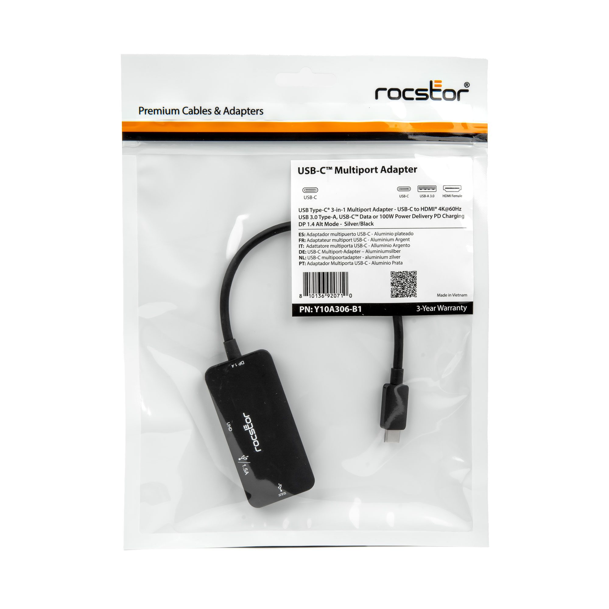| Marketing Information | The Rocstor Premium USB Type-C 3-in-1 4K Multiport Adapter is the perfect solution for extending the port capabilities of Type-C and Thunderbolt 3 or 4 hosts, such as PCs and laptop computers. This compact hub features an HDMI port, a USB-A port, and a Type-C female port, making it ideal for devices with a single Type-C port. Equipped with the latest DisplayPort 1.4 Alt mode supported IC, the adapter supports HDMI video output at a maximum resolution of 4K/60Hz while simultaneously transferring USB 3.1 data at up to 5Gbps. Additionally, the Type-C female port supports PD 3.0 with a maximum power delivery of 100W when connected to a PD Adapter and facilitates data transmission at speeds up to 5Gbps when connected to a Type-C device.