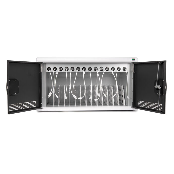Engineered for versatility, the Volt C14 supports both countertop and wall-mount installations, making it adaptable to a variety of spatial and organizational layouts. It supports a wide range of devices—including MacBooks, MacBook Pro 13″, Chromebooks, and other USB-C compatible laptops and notebooks. Its spacious compartments with smooth-edged shelves ensure quick, easy, and secure loading and unloading, even in high-traffic environments.