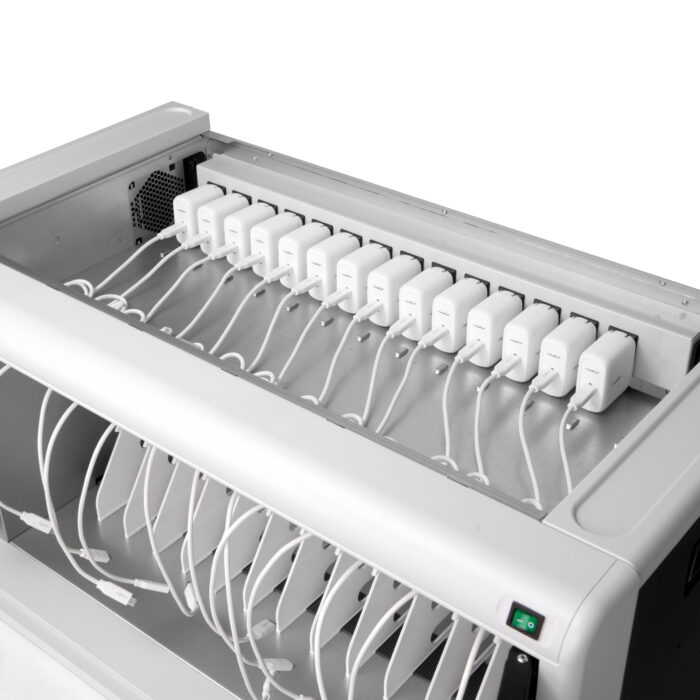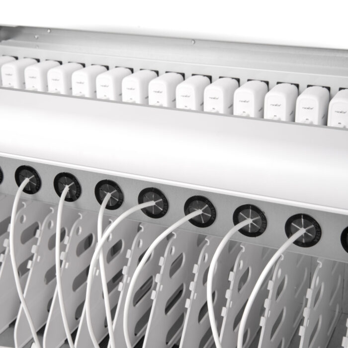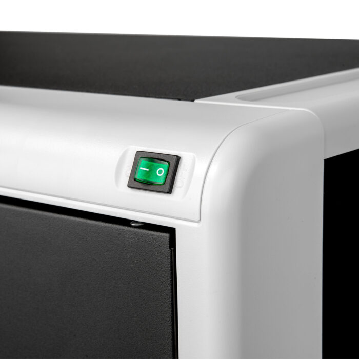 Built from heavy-duty steel, the Volt C14 is designed for long-lasting durability. A three-point locking system safeguards all devices inside, while an integrated fixed drawer and open-access interior ensure ease of use. The unit has been tested to withstand demanding use cases and is available with optional heavy-duty casters, making it easy to transport between rooms or departments.