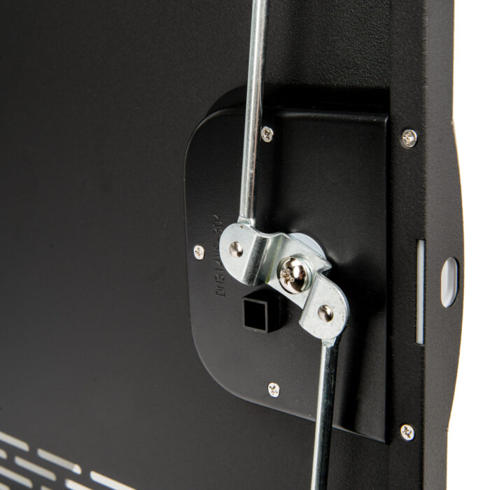 - Security: Retractable front doors with padlock provision and locking rear panels for secure access to AC adapters and cabling.