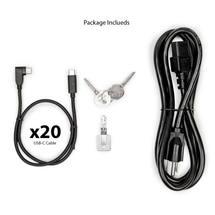 - High-Capacity Charging: 20 USB-C ports with 1000W total output — 10×100W, 15×65W, or 20×45W.
