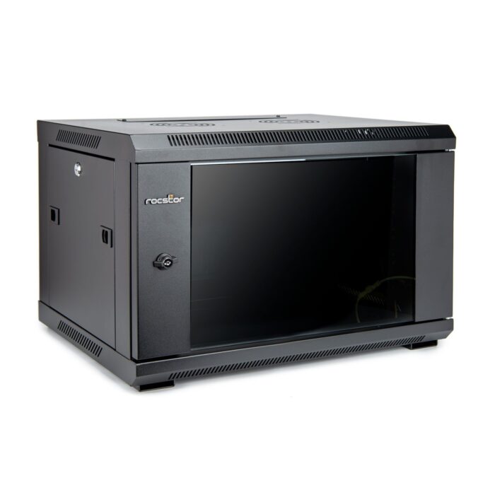 SolidRack 6U Wall Mount Rack Enclosure With Tempered Glass Window – Black